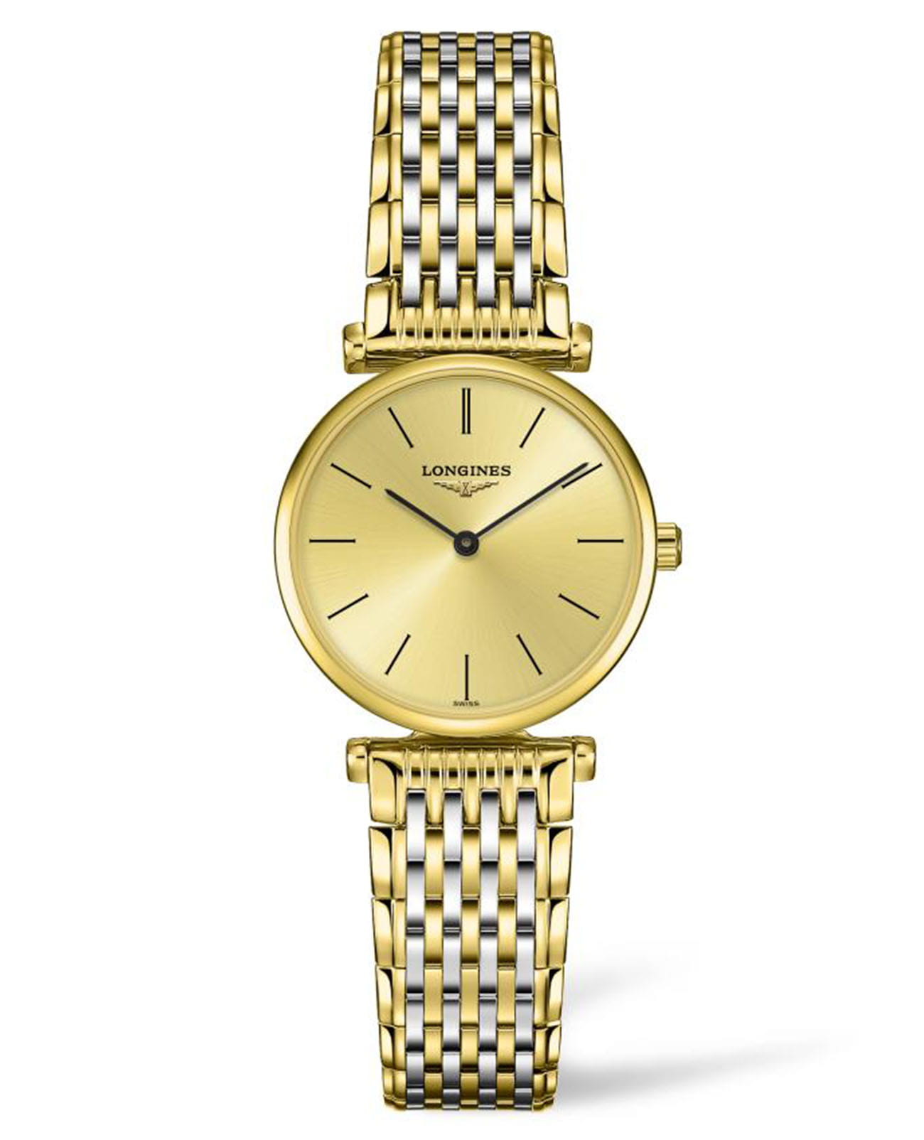Женские швейцарские часы на стальном браслете Longines La Grande Classique L4.209.2.32.7, кварцевый механизм с высокой точностью. Сапфировое стекло устойчивое к появлению царапин, обладающее высокой прозрачностью. Класс водозащиты: 30 метров, позволит защитить корпус от случайных брызг или капель дождя. Корпус часов изготовлен из стали, золотистого цвета.
