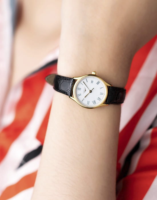 Женские швейцарские часы Longines Lyre L4.259.2.11.2 – премиальный аксессуар для элегантной бизнес-леди. Классический дизайн всегда актуален: изящные линии, тонкий корпус, отсутствие лишних деталей. Корпус выполнен из стали 316L с PVD-покрытиемPVDУльтратонкое покрытие наносится в технике вакуумного напыления, сочетает в себе нитрид титана особой прочности со слоем золота или оксида хрома. Несёт в себе декоративную или защитную функцию., ремешок изготовлен из натуральной кожи аллигатора. Швейцарский кварцевый калибр L152 обеспечивает идеальную точность показателей времени. Сапфировое стекло на 100% устойчиво к появлению царапин. Функции: индикация даты, система EOLEOLПредставляет собой систему, уведомляющую владельца часов о необходимости замены элемента питания. За 2 недели до полного разряда батарейки секундная стрелка перестаёт ходить чётко и начинает перепрыгивать на 3-4 деления..