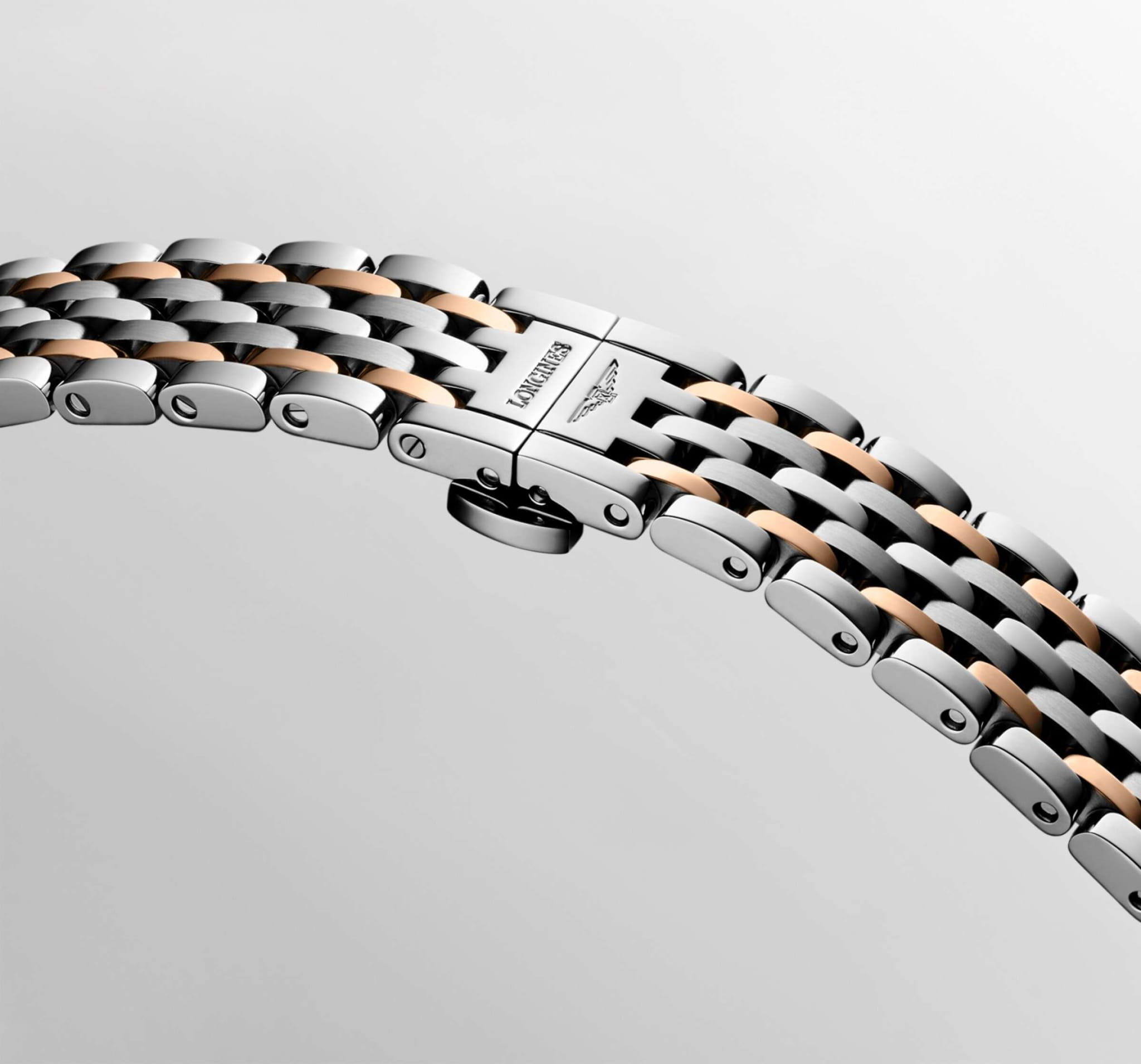 Изысканные женские часы Longines Elegant Collection L4.310.5.79.7 — это воплощение спокойной роскоши и вечного стиля. Все элементы циферблата подчеркивают элегантность и классический вкус модели. Корпус часов изготовлен из нержавеющей стали, диаметром 29 мм. Защиту циферблата обеспечивает прочное сапфировое стеклоСапфировое стеклоПрочный и надёжный материал из кристалла сапфира синтетического происхождения, характеризующийся особой твёрдостью и устойчивостью к царапинам и повреждениям. с антибликовым покрытиемАнтибликовое покрытиеСлой оксида металла в 0,13-0,3 микрон, благодаря которому стекло часов не бликует и не отражает свет. Антибликовое покрытие уменьшает отражение света в 10 раз, обеспечивая отличную читаемость показателей циферблата. гарантирующее четкость показаний. Циферблат украшен 13 бриллиантами Top Wesselton VS-SI общим весом 0,029 карата. Неподвижный безельБезельВнешний ободок, закрепляющий стекло. В спортивных часах так называется поворотное кольцо с делениями на циферблате, выполняет роль таймера – замеряет отрезки времени на шкале. Неподвижный безель – элемент декора. Однонаправленно вращающийся безель на дайверских часах позволяет фиксировать моменты погружения и выныривания на поверхность. из 18-каратного золота18-каратное золотоОбозначение по каратной системе пробирования, оно показывает, сколько драгоценного металла содержится в изделии. 18 карат - в составе 75% чистого золота, соответствует 750 пробе.