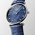 Женские швейцарские часы Longines La Grande Classique L4.512.4.81.2, кварцевый механизм с высокой точностью. Сапфировое стеклоСапфировое стеклоПрочный и надёжный материал из кристалла сапфира синтетического происхождения, характеризующийся особой твёрдостью и устойчивостью к царапинам и повреждениям. устойчивое к появлению царапин, обладающее высокой прозрачностью. Корпус часов изготовлен из стали. Циферблат с 12 бриллиантами группы Top Wesselton VS-SI общим весом 0.081 карата. Класс водозащиты: 30 метров, позволит защитить корпус от случайных брызг или капель дождя. Ремешок синего цвета из кожи аллигатора, с пряжкой.