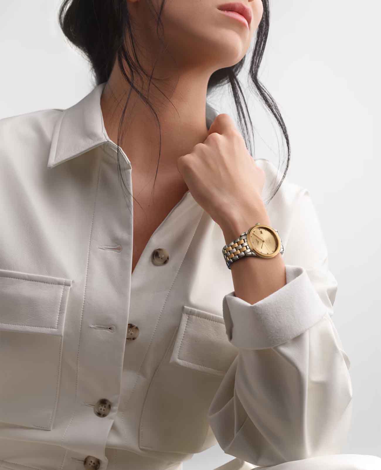 Корпус из нержавеющей стали с частичным PVD-покрытиемPVDУльтратонкое покрытие наносится в технике вакуумного напыления, сочетает в себе нитрид титана особой прочности со слоем золота или оксида хрома. Несёт в себе декоративную или защитную функцию., который прошёл тщательную обработку, не только защищает швейцарский автоматический механизм L888, но и придаёт часам прочность и долговечность. Запас хода на 64 часа гарантирует, что часы будут работать безупречно в течение нескольких дней. Стальной браслет с частичным PVD-покрытиемPVDУльтратонкое покрытие наносится в технике вакуумного напыления, сочетает в себе нитрид титана особой прочности со слоем золота или оксида хрома. Несёт в себе декоративную или защитную функцию. на застёжке «бабочка» с кнопкамиЗастёжка "бабочка"Такой вид застёжки дополняется предохранителями, помогающими избежать случайного раскрытия браслета. Обладают изящным исполнением.