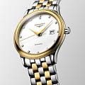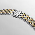 Longines L4.984.3.17.7 — классическая модель из серии Flagship Classic с утончённой эстетикой: корпус и браслет из нержавеющей стали с жёлтым PVDPVDУльтратонкое покрытие наносится в технике вакуумного напыления, сочетает в себе нитрид титана особой прочности со слоем золота или оксида хрома. Несёт в себе декоративную или защитную функцию.-покрытием, прозрачная задняя крышка из сапфира открывает вид на автоматический калибр L888 (25 200 пк/ч, монокристаллическая кремниевая пружина баланса), обеспечивающий запас хода до 72 ч ; выпуклое сапфировое стеклоСапфировое стеклоПрочный и надёжный материал из кристалла сапфира синтетического происхождения, характеризующийся особой твёрдостью и устойчивостью к царапинам и повреждениям. с несколькими слоями антибликового покрытияАнтибликовое покрытиеСлой оксида металла в 0,13-0,3 микрон, благодаря которому стекло часов не бликует и не отражает свет. Антибликовое покрытие уменьшает отражение света в 10 раз, обеспечивая отличную читаемость показателей циферблата. на внутренней стороне гарантирует отличную читаемость циферблата ; матовый белый циферблат украшен 13 бриллиантами Top Wesselton VS‑SI общим весом приблизительно 0,059 ct, стрелки — позолоченные . Диаметр корпуса 40 мм, толщина 8,7 мм, расстояние между ушками 21 мм, расстояние от ушка до ушка 47 мм, водозащита 3 бар (30 м), функции: часы, минуты, секунды и дата .