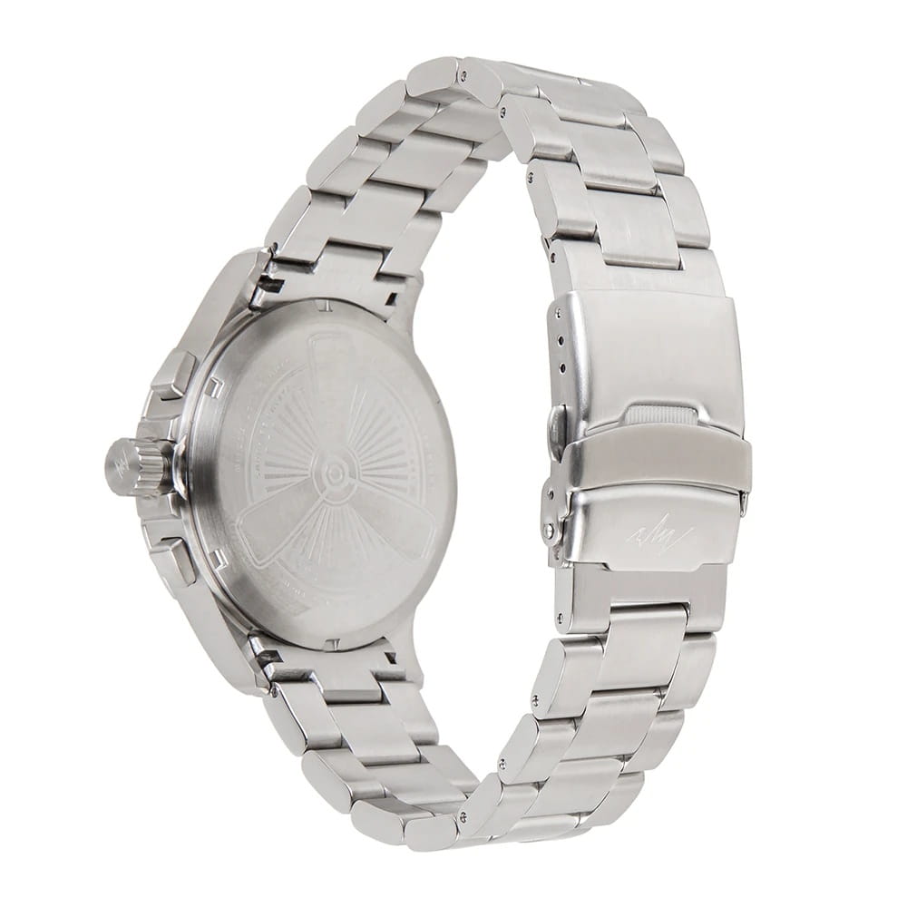 Мужские наручные часы Луч Aviator 740280595 — это стильный хронографХронографФункция позволяет измерять отрезки времени с особой точностью: часы, минуты, секунды. Верным признаком хронографа является наличие на циферблате 3 дополнительных окошек-счётчиков., который сочетает элегантность и современный дизайн. Элегантный корпус диаметром 44 мм выполнен из нержавеющей стали придает модели особый изысканный вид. Циферблат защищен сапфировым стекломСапфировое стеклоПрочный и надёжный материал из кристалла сапфира синтетического происхождения, характеризующийся особой твёрдостью и устойчивостью к царапинам и повреждениям., обеспечивающим устойчивость к царапинам. Метки в виде штрихов и арабских цифр, окошко даты находится в положении 3 часа. Часы оснащены кварцевым механизмом высокой точности, а стальной браслет на раскладной застёжкеРаскладная застёжкаТакой тип застёжки используется только на браслетах из металла. Она никогда не раскрывается полностью, происходит разделение на 2 и более частей. Раскладывающая застёжка снизит вероятность потери часов к минимуму. гарантирует комфортную посадку на запястье. Стрелки с люминесцентным покрытиемЛюминесцентное покрытиеПозволяет считывать показания времени в темноте. Производители наносят на стрелки, часовые индексы, безель или поверхность циферблата светонакопительный состав, дающий холодное свечение. позволяют легко считывать время даже в условиях недостаточного освещения, тахиметрТахиметрРазмеченная шкала, располагается на ободке или безеле часов. Тахиметр позволяет рассчитать скорость на определённом участке пути, расстояние измеряется в километрах или милях. по внешнему краю. Водозащита 100 метров позволит плавать, нырять и заниматься другими водными видами спорта. Луч — отличный выбор для тех, кто ценит утонченность и качество. В комплекте два ремня: кожаный и стальной.