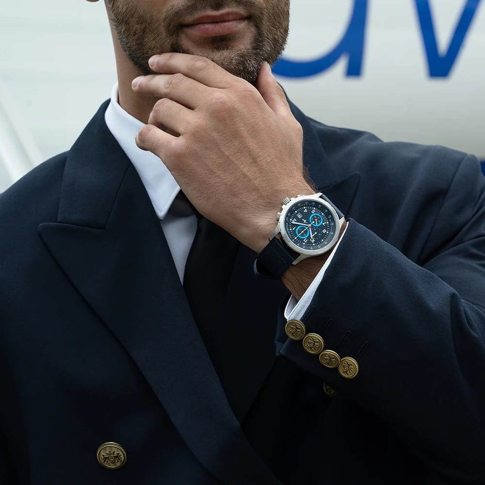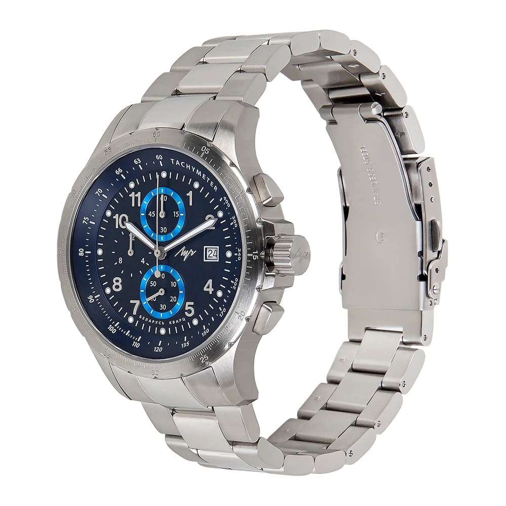 Мужские наручные часы Луч Aviator 740280598 — это стильный хронографХронографФункция позволяет измерять отрезки времени с особой точностью: часы, минуты, секунды. Верным признаком хронографа является наличие на циферблате 3 дополнительных окошек-счётчиков., который сочетает элегантность и современный дизайн. Элегантный корпус диаметром 44 мм выполнен из нержавеющей стали придает модели особый изысканный вид. Циферблат защищен сапфировым стекломСапфировое стеклоПрочный и надёжный материал из кристалла сапфира синтетического происхождения, характеризующийся особой твёрдостью и устойчивостью к царапинам и повреждениям., обеспечивающим устойчивость к царапинам. Метки в виде штрихов и арабских цифр, окошко даты находится в положении 3 часа. Часы оснащены кварцевым механизмом высокой точности, а стальной браслет на раскладной застёжкеРаскладная застёжкаТакой тип застёжки используется только на браслетах из металла. Она никогда не раскрывается полностью, происходит разделение на 2 и более частей. Раскладывающая застёжка снизит вероятность потери часов к минимуму. гарантирует комфортную посадку на запястье. Стрелки с люминесцентным покрытиемЛюминесцентное покрытиеПозволяет считывать показания времени в темноте. Производители наносят на стрелки, часовые индексы, безель или поверхность циферблата светонакопительный состав, дающий холодное свечение. позволяют легко считывать время даже в условиях недостаточного освещения, тахиметрТахиметрРазмеченная шкала, располагается на ободке или безеле часов. Тахиметр позволяет рассчитать скорость на определённом участке пути, расстояние измеряется в километрах или милях. по внешнему краю. Водозащита 100 метров позволит плавать, нырять и заниматься другими водными видами спорта. Луч — отличный выбор для тех, кто ценит утонченность и качество. В комплекте два ремня: кожаный и стальной.
