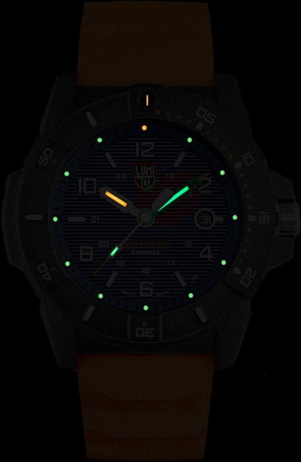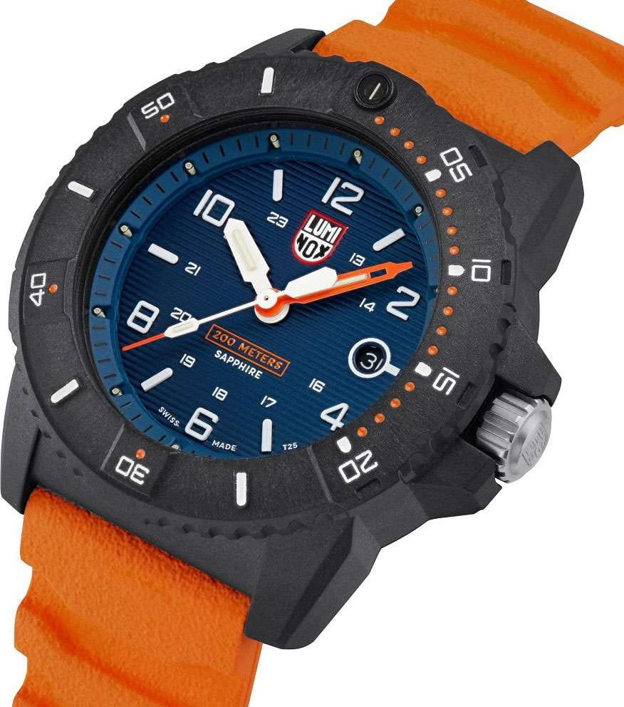 Швейцарские кварцевые часы Luminox XS.3603 идеально сочетают в себе современный стиль и надежность. Эти часы оснащены корпусом из усиленного прессованного карбонаКарбонОт «carbon», «carbone» - углерод, углепластик - полимерный композиционный материал из переплетённых под определенным углом между собой нитей углеродного волокна, применяется для изготовления лёгких, но прочных деталей. В часах часто используют для украшения циферблатов и ремешков. Так же карбон используется в изготовлении корпусов. Такие корпуса обладают антикоррозионным свойством, не поддаются электромагнитному излучению, обладают повышенной прочностью и противоударностью., что обеспечивает их легкость и прочность. Синий циферблат подчеркивает спортивный дизайн модели, а полиуретановый ремешок с классической застежкой обеспечивает комфорт при носке. Часы обладают водозащитой на глубине до 200 метров, что делает их идеальным выбором для любителей водных видов спорта. LLTLLTLLT — это автономный механизм подсветки, основанный на использовании микроскопических газонаполненных элементов. Специальные герметичные капсулы из боросиликатного стекла, интегрированные в циферблат, генерируют свечение без необходимости подключения к внешним источникам энергии. Для их работы не требуется ни дополнительный свет, ни механическое воздействие (например, нажатие кнопки). Свечение возникает благодаря химическому процессу: реакция между тритием, заключенным в капсулах, и люминофорным покрытием создает стабильное автономное освещение. Технология обеспечивает энергетическую независимость и долговечность подсветки.-подсветка гарантирует отличную видимость в темное время суток, а сапфировое стеклоСапфировое стеклоПрочный и надёжный материал из кристалла сапфира синтетического происхождения, характеризующийся особой твёрдостью и устойчивостью к царапинам и повреждениям. с антибликовым покрытиемАнтибликовое покрытиеСлой оксида металла в 0,13-0,3 микрон, благодаря которому стекло часов не бликует и не отражает свет. Антибликовое покрытие уменьшает отражение света в 10 раз, обеспечивая отличную читаемость показателей циферблата. защищает от царапин и обеспечивает четкость отображения. Модель оснащена функцией календаря с окошком даты, дополненным увеличительным стеклом для удобства использования. Часы поддерживают 12-ти и 24-х часовой формат времени, а вращающийся в одном направлении безельБезельВнешний ободок, закрепляющий стекло. В спортивных часах так называется поворотное кольцо с делениями на циферблате, выполняет роль таймера – замеряет отрезки времени на шкале. Неподвижный безель – элемент декора. Однонаправленно вращающийся безель на дайверских часах позволяет фиксировать моменты погружения и выныривания на поверхность. позволяет отслеживать время погружения или других активностей. Задняя крышка и заводная головка выполнены из стали, что добавляет дополнительную прочность конструкции. Заводная головка с защитой предотвращает случайное изменение времени. Благодаря диаметру в 45 мм и толщине 14 мм, эти часы обладают внушительным и привлекательным внешним видом, а их вес всего 75 граммов делает их крайне удобными для ежедневного использования.
