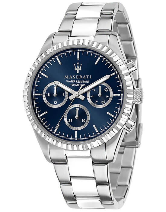 Мужские часы с хронографом Maserati COMPETIZIONE R8853100022, кварцевый механизм с высокой точностью. Класс водозащиты: 100 метров, позволит плавать, нырять и заниматься другими водными видами спорта. Корпус часов изготовлен из стали, цвета.