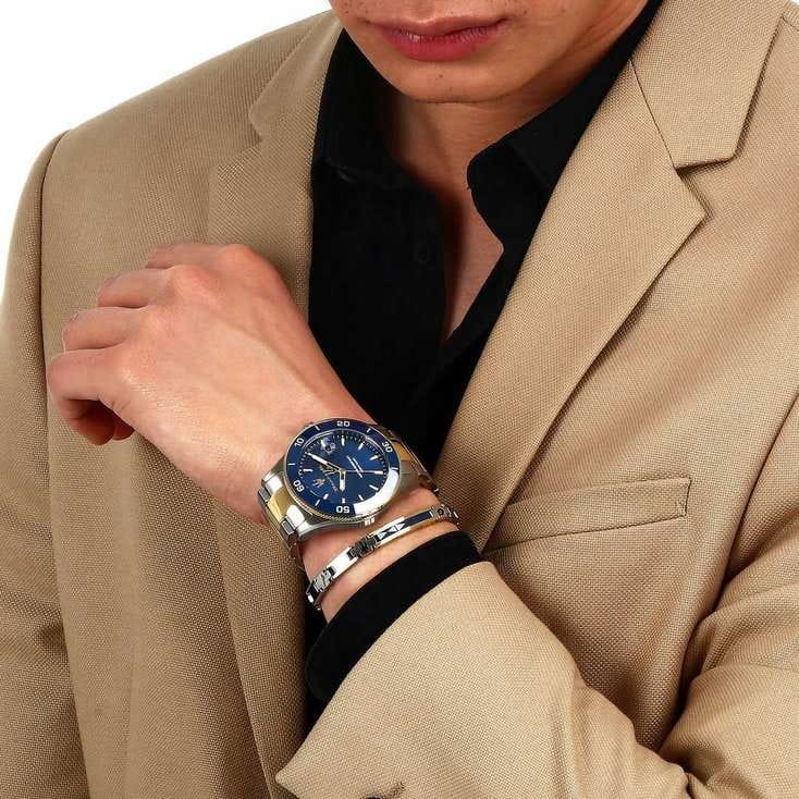 Мужские часы Maserati R8873600010 — это стильное сочетание элегантности и современного дизайна. Корпус из нержавеющей стали с диаметром 43 мм идеально сбалансирован и элегантен. Минеральное стеклоМинеральное стеклоМинеральное стекло представляет собой искусственно выращенный минерал кварца. Такое стекло отличается особой устойчивостью к повреждениям и царапинам. Уступает по некоторым качествам сапфировому стеклу. защищает циферблат от царапин. Стальной браслет с PVD-покрытиемPVDУльтратонкое покрытие наносится в технике вакуумного напыления, сочетает в себе нитрид титана особой прочности со слоем золота или оксида хрома. Несёт в себе декоративную или защитную функцию. на застёжке-бабочке с кнопкамиЗастёжка "бабочка"Такой вид застёжки дополняется предохранителями, помогающими избежать случайного раскрытия браслета. Обладают изящным исполнением. идеально дополняют дизайн часов, обеспечивая комфортное ношение. Стрелки и метки с люминесцентным покрытиемЛюминесцентное покрытиеПозволяет считывать показания времени в темноте. Производители наносят на стрелки, часовые индексы, безель или поверхность циферблата светонакопительный состав, дающий холодное свечение.. БезельБезельВнешний ободок, закрепляющий стекло. В спортивных часах так называется поворотное кольцо с делениями на циферблате, выполняет роль таймера – замеряет отрезки времени на шкале. Неподвижный безель – элемент декора. Однонаправленно вращающийся безель на дайверских часах позволяет фиксировать моменты погружения и выныривания на поверхность. с керамической вставкой. Часы обладают впечатляющей водонепроницаемостью до 10 бар (100 метров), что делает их идеальными для повседневной носки. Метки в виде штрихов. Окошко даты с увеличительным стеклом находится в положении 3 часа.