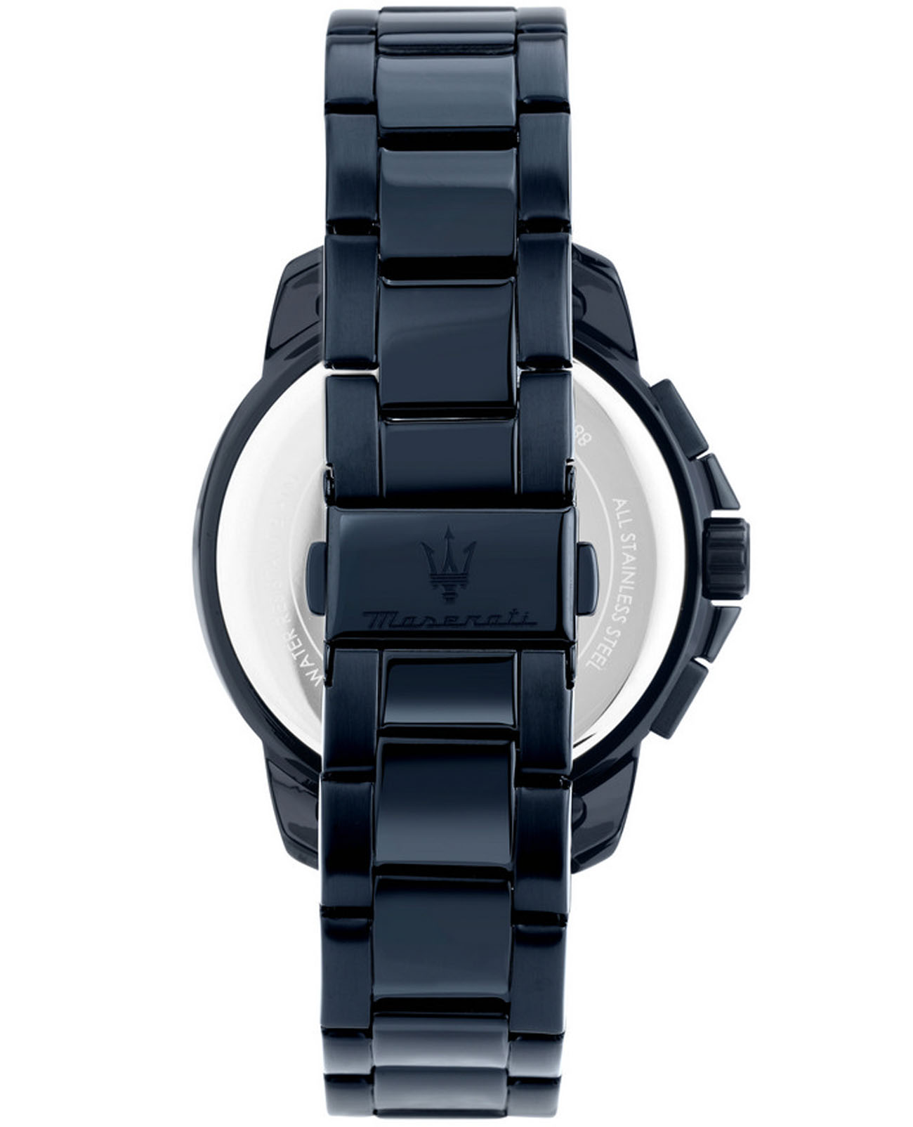 Мужские итальянские часы- хронографХронографФункция позволяет измерять отрезки времени с особой точностью: часы, минуты, секунды. Верным признаком хронографа является наличие на циферблате 3 дополнительных окошек-счётчиков. Maserati Successo Chronograph R8873621040, кварцевый механизм с высокой точностью. Корпус часов изготовлен из стали с PVD-покрытиемPVDУльтратонкое покрытие наносится в технике вакуумного напыления, сочетает в себе нитрид титана особой прочности со слоем золота или оксида хрома. Несёт в себе декоративную или защитную функцию.. Стрелки с люминесцентным покрытиемЛюминесцентное покрытиеПозволяет считывать показания времени в темноте. Производители наносят на стрелки, часовые индексы, безель или поверхность циферблата светонакопительный состав, дающий холодное свечение.. Класс водозащиты: 100 метров, позволит плавать, нырять и заниматься другими водными видами спорта. Браслет с раскладной застёжкойРаскладная застёжкаТакой тип застёжки используется только на браслетах из металла. Она никогда не раскрывается полностью, происходит разделение на 2 и более частей. Раскладывающая застёжка снизит вероятность потери часов к минимуму. и с PVD-покрытиемPVDУльтратонкое покрытие наносится в технике вакуумного напыления, сочетает в себе нитрид титана особой прочности со слоем золота или оксида хрома. Несёт в себе декоративную или защитную функцию..