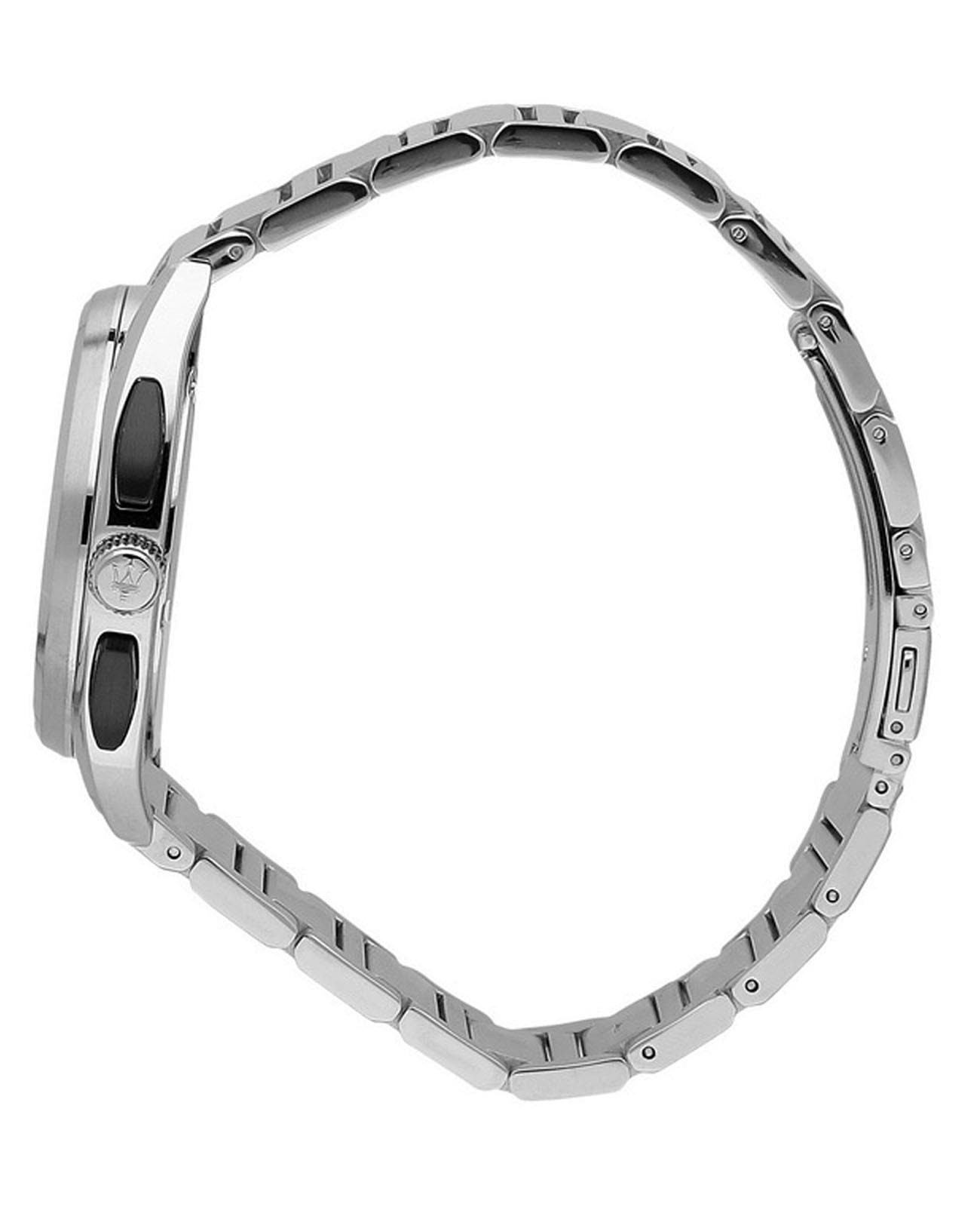 Мужские итальянские часы c хронографомХронографФункция позволяет измерять отрезки времени с особой точностью: часы, минуты, секунды. Верным признаком хронографа является наличие на циферблате 3 дополнительных окошек-счётчиков. Maserati Trimarano R8873632003, кварцевый механизм с высокой точностью. Корпус часов изготовлен из стали. Стрелки с люминесцентным покрытиемЛюминесцентное покрытиеПозволяет считывать показания времени в темноте. Производители наносят на стрелки, часовые индексы, безель или поверхность циферблата светонакопительный состав, дающий холодное свечение.. Класс водозащиты: 100 метров, позволит плавать, нырять и заниматься другими водными видами спорта. Стальной браслет на раскладной застёжкойРаскладная застёжкаТакой тип застёжки используется только на браслетах из металла. Она никогда не раскрывается полностью, происходит разделение на 2 и более частей. Раскладывающая застёжка снизит вероятность потери часов к минимуму..