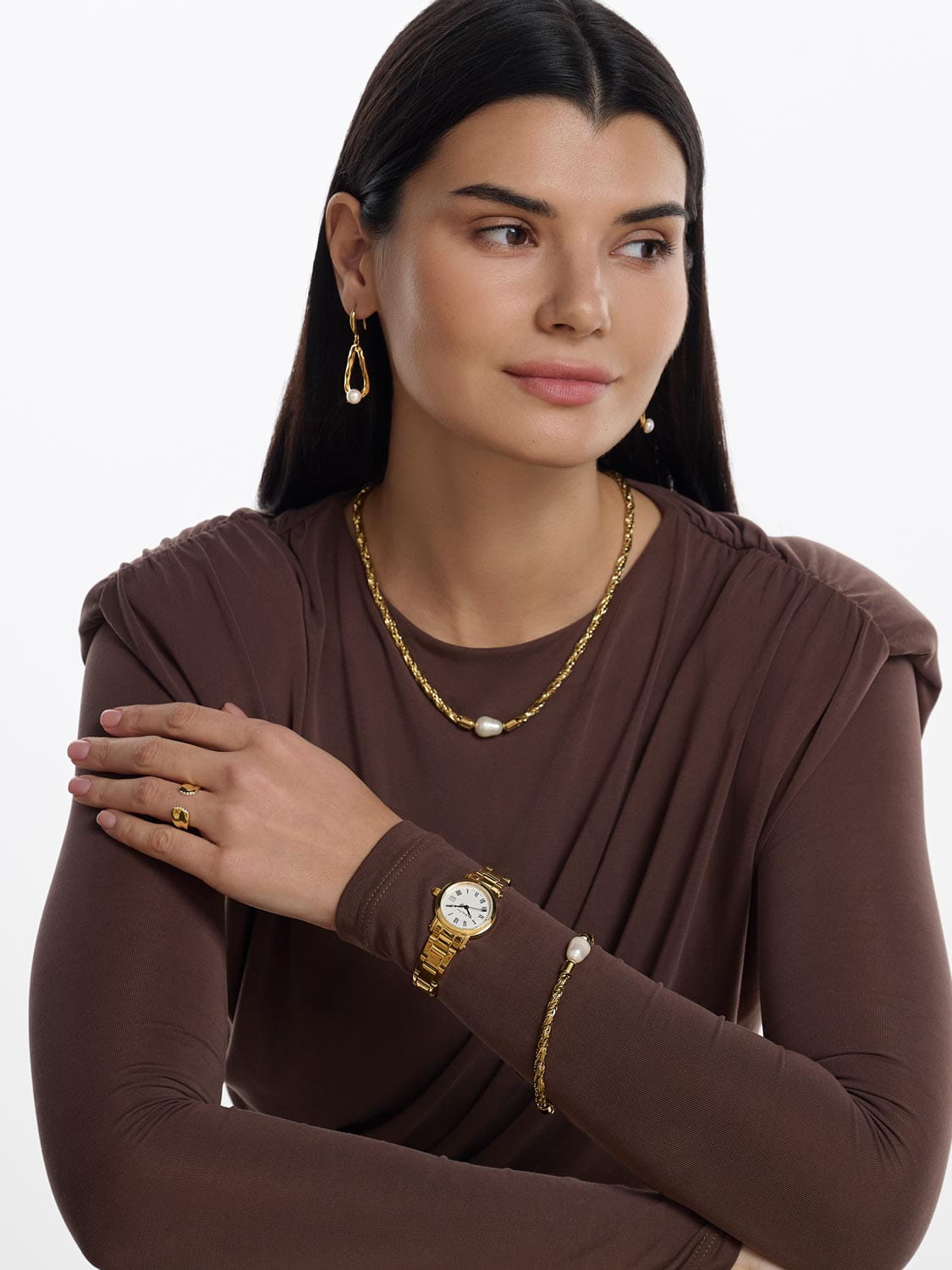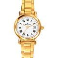 Женские кварцевые часы Mathey-Tissot City Metal D31186MPBR— это стильное сочетание элегантности и современного дизайна. Изящный корпус выполнен из нержавеющей стали 316L с PVD-покрытиемPVDУльтратонкое покрытие наносится в технике вакуумного напыления, сочетает в себе нитрид титана особой прочности со слоем золота или оксида хрома. Несёт в себе декоративную или защитную функцию. золотистого цвета, что придаст образу женственности и романтизма. Изысканный циферблат с метками в виде римских цифр придает модели особый блеск. Циферблат защищен минеральным стекломМинеральное стеклоМинеральное стекло представляет собой искусственно выращенный минерал кварца. Такое стекло отличается особой устойчивостью к повреждениям и царапинам. Уступает по некоторым качествам сапфировому стеклу. с сапфировым покрытием, обеспечивающий устойчивость к царапинам. Окошко даты находится в положении 3 часа. Часы оснащены надежным кварцевым механизмом. Стальной браслет с PVD-покрытиемPVDУльтратонкое покрытие наносится в технике вакуумного напыления, сочетает в себе нитрид титана особой прочности со слоем золота или оксида хрома. Несёт в себе декоративную или защитную функцию. на раскладной застёжкеРаскладная застёжкаТакой тип застёжки используется только на браслетах из металла. Она никогда не раскрывается полностью, происходит разделение на 2 и более частей. Раскладывающая застёжка снизит вероятность потери часов к минимуму., гарантирует комфортное и безопасное ношение. Класс водозащиты: 30 метров позволит защитить корпус от случайных брызг или капель дождя. Mathey-Tissot  — отличный выбор для тех, кто ценит утонченность и качество.