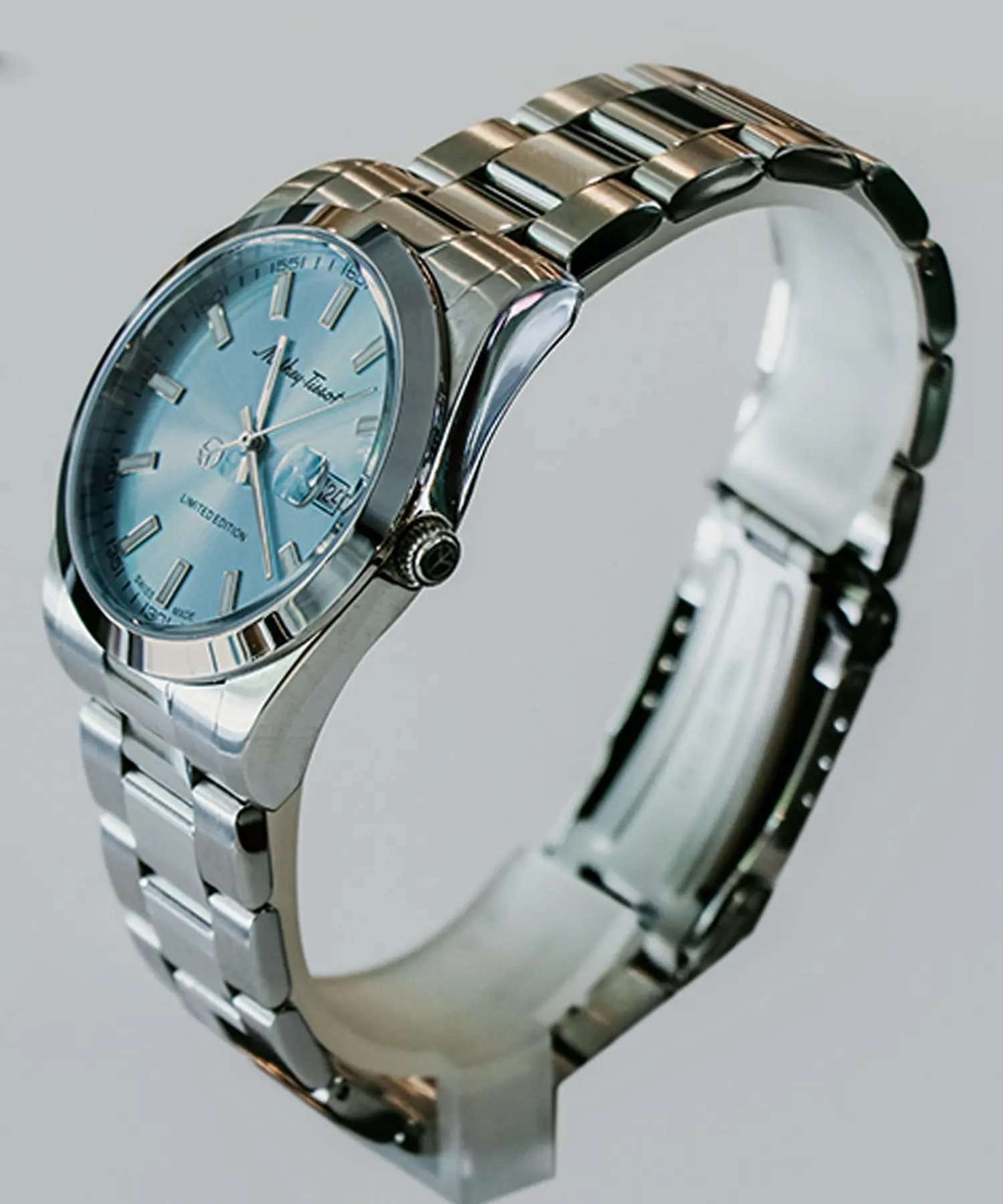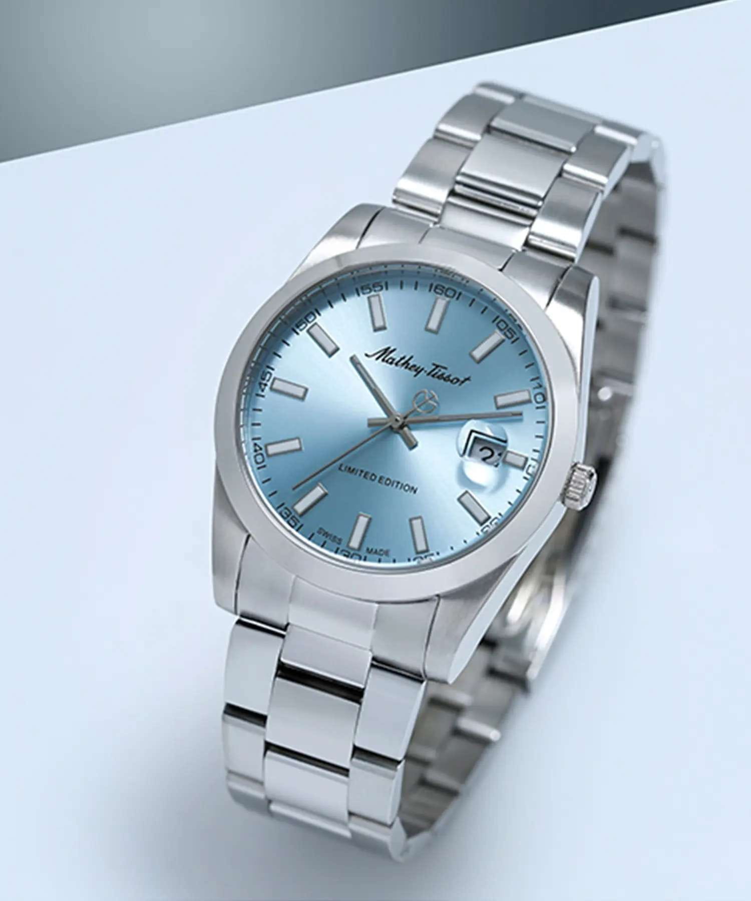 Мужские кварцевые часы Mathey-Tissot Mathy H451BU — это стильное сочетание элегантности и современного дизайна. Лимитированная серия. Изящный корпус выполнен из нержавеющей стали, диаметром 42 мм, что придаст образу элегантности и надежности. Изысканный циферблат с метками в виде штрихов придает модели особый блеск. Циферблат защищен минеральным стекломМинеральное стеклоМинеральное стекло представляет собой искусственно выращенный минерал кварца. Такое стекло отличается особой устойчивостью к повреждениям и царапинам. Уступает по некоторым качествам сапфировому стеклу., обеспечивает устойчивость к царапинам. Стрелки и метки с люминесцентным покрытиемЛюминесцентное покрытиеПозволяет считывать показания времени в темноте. Производители наносят на стрелки, часовые индексы, безель или поверхность циферблата светонакопительный состав, дающий холодное свечение.. Окошко даты находится в положении 3 часа. Часы оснащены надежным кварцевым механизмом. Стальной браслет на раскладной застёжке с фиксаторомРаскладная застёжкаТакой тип застёжки используется только на браслетах из металла. Она никогда не раскрывается полностью, происходит разделение на 2 и более частей. Раскладывающая застёжка снизит вероятность потери часов к минимуму., гарантирует комфортное и безопасное ношение. Рифленая заводная головка. Класс водозащиты: 50 метров, позволит защитить корпус от случайных брызг или капель дождя. Mathey-Tissot  — отличный выбор для тех, кто ценит утонченность и качество.