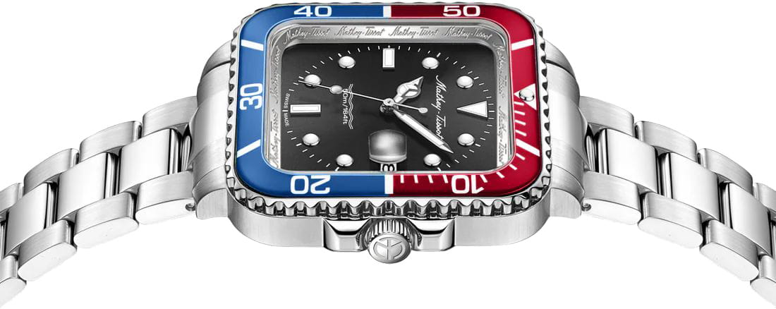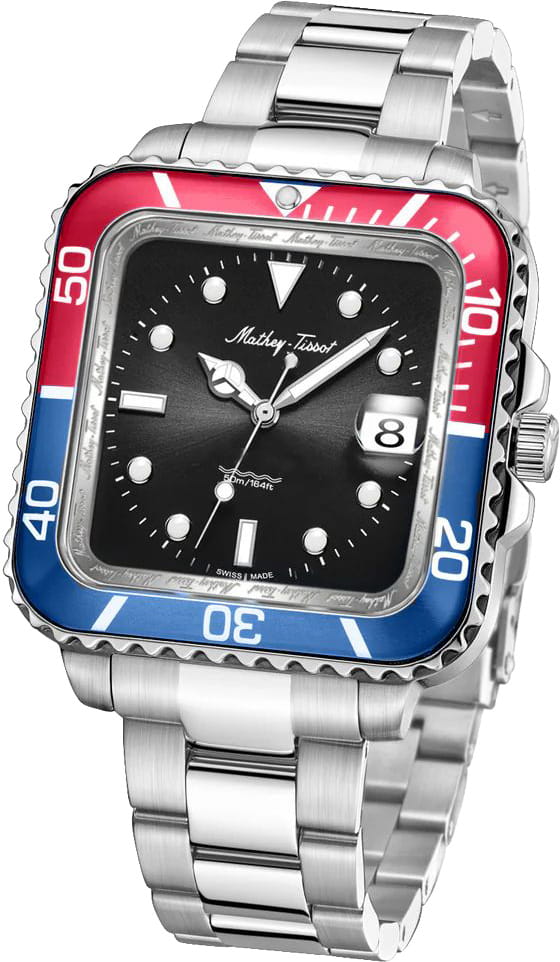Мужские кварцевые часы Mathey-Tissot Mathy H902QAR — это стильное сочетание элегантности и современного дизайна. Изящный корпус выполнен из нержавеющей стали, диаметром 42 мм, что придаст образу элегантности и надежности. Изысканный циферблат с метками в виде точек придает модели особый блеск. Циферблат защищен сапфировым стекломСапфировое стеклоПрочный и надёжный материал из кристалла сапфира синтетического происхождения, характеризующийся особой твёрдостью и устойчивостью к царапинам и повреждениям., обеспечивает устойчивость к царапинам. Стрелки и метки с люминесцентным покрытиемЛюминесцентное покрытиеПозволяет считывать показания времени в темноте. Производители наносят на стрелки, часовые индексы, безель или поверхность циферблата светонакопительный состав, дающий холодное свечение. SuperLumiNova, которое светится в темноте после непродолжительной зарядки на свету. БезельБезельВнешний ободок, закрепляющий стекло. В спортивных часах так называется поворотное кольцо с делениями на циферблате, выполняет роль таймера – замеряет отрезки времени на шкале. Неподвижный безель – элемент декора. Однонаправленно вращающийся безель на дайверских часах позволяет фиксировать моменты погружения и выныривания на поверхность. с PVD-покрытиемPVDУльтратонкое покрытие наносится в технике вакуумного напыления, сочетает в себе нитрид титана особой прочности со слоем золота или оксида хрома. Несёт в себе декоративную или защитную функцию.. Окошко даты находится в положении 3 часа. Стальной браслет на раскладной застёжке с фиксаторомРаскладная застёжкаТакой тип застёжки используется только на браслетах из металла. Она никогда не раскрывается полностью, происходит разделение на 2 и более частей. Раскладывающая застёжка снизит вероятность потери часов к минимуму., гарантирует комфортное и безопасное ношение. Рифленая заводная головка. Класс водозащиты: 50 метров позволит защитить корпус от случайных брызг или капель дождя. Mathey-Tissot  — отличный выбор для тех, кто ценит утонченность и качество.