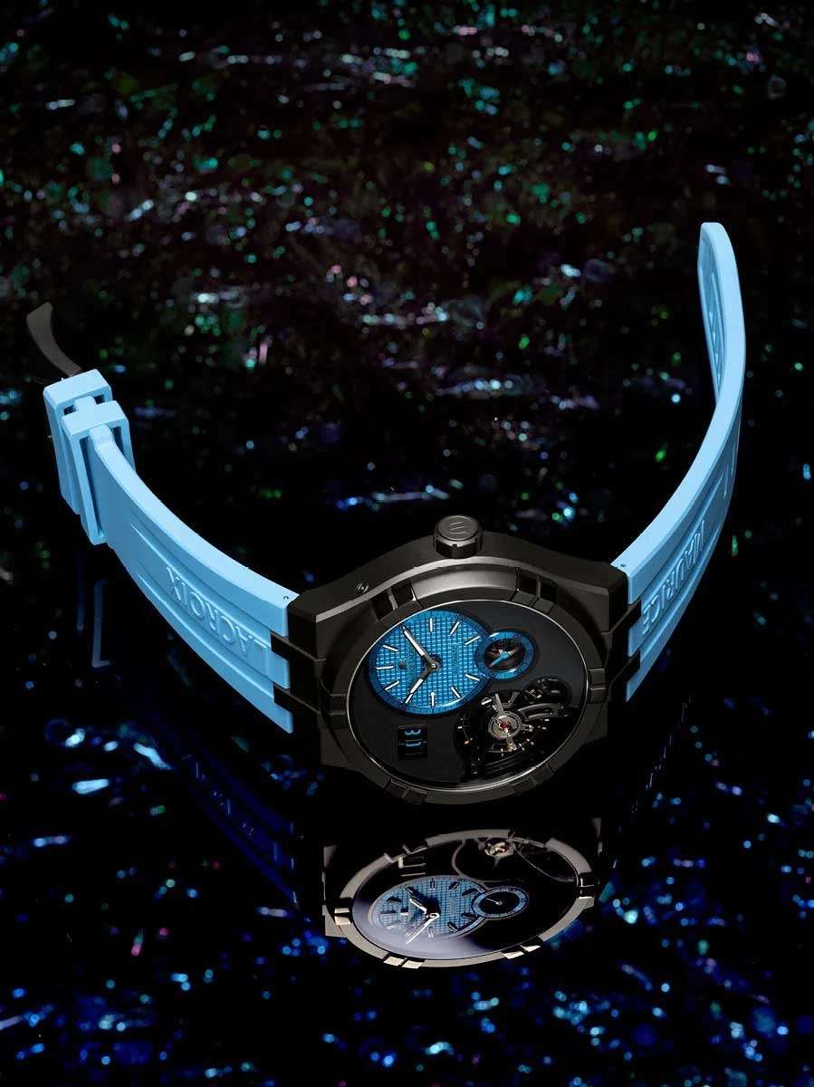 Швейцарские часы Maurice Lacroix Aikon Master Grand Date AI6118-DLB0J-430-H — это воплощение высоких стандартов часового искусства и современного стиля. В основе этого изысканного аксессуара лежит надежный механический механизм с автоподзаводом, калибр ML331, который обеспечивает точность и долговечность. Часы обладают запасом хода в 50 часов, а частота их работы составляет 18 000 полуколебаний в час. Корпус изготовлен из стали с высокотехнологичным DLC-покрытиемDLC-покрытиеDiamond like carbon - одно из лучших видов покрытия, представляющее собой углерод с алмазными свойствами. На поверхность материала наносятся распавшиеся молекулы углерода, превращающиеся в плёнку из алмазоподобных связей, которая перенимает твёрдость алмаза., придающим дополнительную прочность и стойкость к износу. Черно-голубой циферблат выделяется благодаря эффектному дизайну со смещенным центром, а также прозрачному окошку, через которое можно наблюдать за работой механизма. БезельБезельВнешний ободок, закрепляющий стекло. В спортивных часах так называется поворотное кольцо с делениями на циферблате, выполняет роль таймера – замеряет отрезки времени на шкале. Неподвижный безель – элемент декора. Однонаправленно вращающийся безель на дайверских часах позволяет фиксировать моменты погружения и выныривания на поверхность. привлекает внимание своим оригинальным дизайном из шести «когтей». Водозащита на уровне 100WR позволяет использовать часы в различных условиях, включая плавание. Стрелки и метки с люминесцентным покрытиемЛюминесцентное покрытиеПозволяет считывать показания времени в темноте. Производители наносят на стрелки, часовые индексы, безель или поверхность циферблата светонакопительный состав, дающий холодное свечение., что облегчает чтение времени даже в условиях слабого освещения. Сапфировое стеклоСапфировое стеклоПрочный и надёжный материал из кристалла сапфира синтетического происхождения, характеризующийся особой твёрдостью и устойчивостью к царапинам и повреждениям. с двойным антибликовым покрытиемАнтибликовое покрытиеСлой оксида металла в 0,13-0,3 микрон, благодаря которому стекло часов не бликует и не отражает свет. Антибликовое покрытие уменьшает отражение света в 10 раз, обеспечивая отличную читаемость показателей циферблата. защищает циферблат от царапин и бликов, а прозрачная задняя крышка из сапфирового стекла крепится на 7 винтах, позволяя наслаждаться видом внутреннего механизма. Часы также оснащены функцией большого календаря, расположенного на отметке 10 часов, и завинчивающейся заводной головкой, что добавляет надежности конструкции. Каучуковый ремешок с классической застежкой и системой быстрой замены обеспечивает комфорт и стильный внешний вид. В комплекте идет дополнительный сменный ремешок, что расширяет возможности для персонализации.