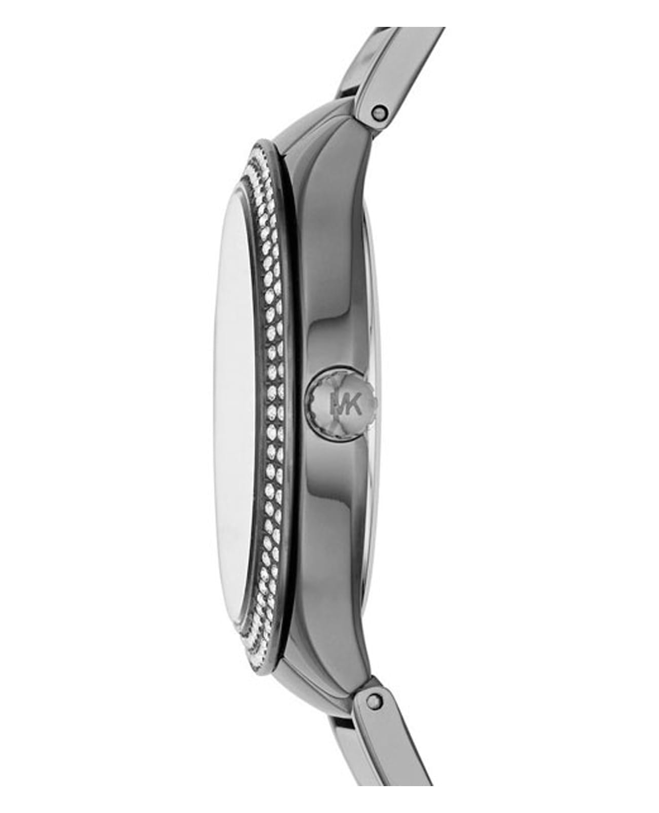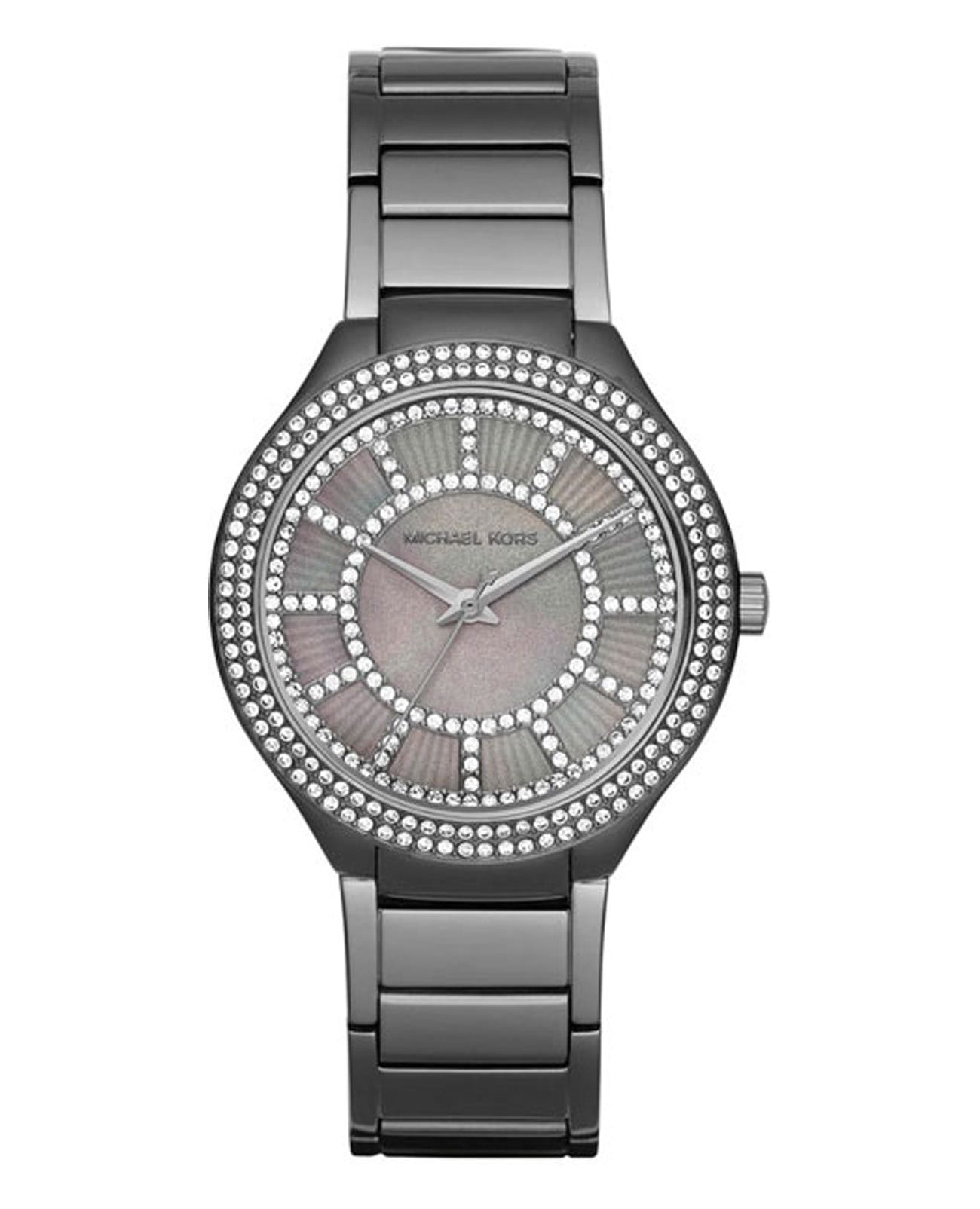 Женские американские часы Michael Kors Kerry MK3410, кварцевый механизм с высокой точностью. Минеральное стеклоМинеральное стеклоМинеральное стекло представляет собой искусственно выращенный минерал кварца. Такое стекло отличается особой устойчивостью к повреждениям и царапинам. Уступает по некоторым качествам сапфировому стеклу., устойчивое к мелким механическим повреждениям. Корпус часов выполнен из нержавеющей стали с PVD-покрытиемPVDУльтратонкое покрытие наносится в технике вакуумного напыления, сочетает в себе нитрид титана особой прочности со слоем золота или оксида хрома. Несёт в себе декоративную или защитную функцию.. БезельБезельВнешний ободок, закрепляющий стекло. В спортивных часах так называется поворотное кольцо с делениями на циферблате, выполняет роль таймера – замеряет отрезки времени на шкале. Неподвижный безель – элемент декора. Однонаправленно вращающийся безель на дайверских часах позволяет фиксировать моменты погружения и выныривания на поверхность. и циферблат украшены кристаллами. Класс водозащиты: 50 метров, позволит защитить корпус от случайных брызг или капель дождя. Стальной браслет с PVD-покрытиемPVDУльтратонкое покрытие наносится в технике вакуумного напыления, сочетает в себе нитрид титана особой прочности со слоем золота или оксида хрома. Несёт в себе декоративную или защитную функцию. на раскладной застёжкеРаскладная застёжкаТакой тип застёжки используется только на браслетах из металла. Она никогда не раскрывается полностью, происходит разделение на 2 и более частей. Раскладывающая застёжка снизит вероятность потери часов к минимуму..