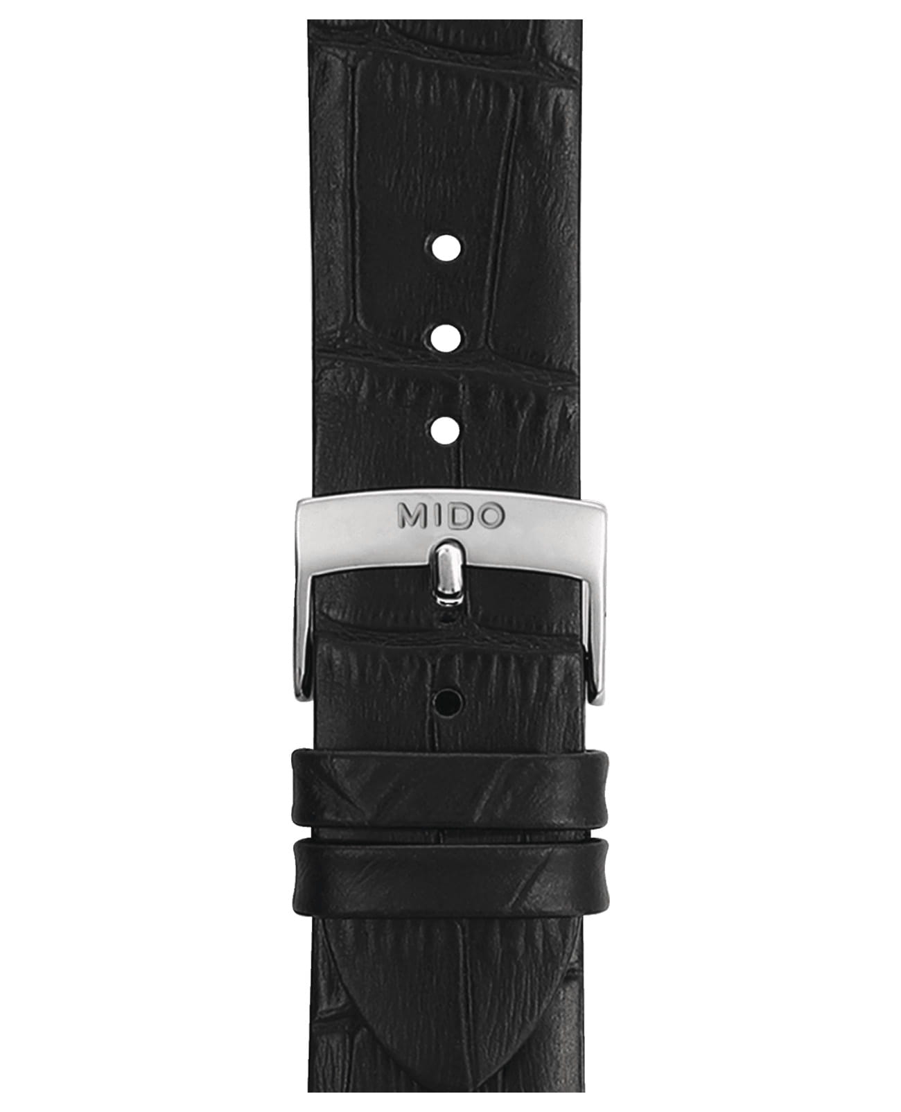 Мужские швейцарские часы Mido Baroncelli Heritage Gent M027.407.16.050.00 сочетают элегантность и высокую точность, представленные в круглом ультратонком корпусе диаметром 39 мм из нержавеющей стали с толщиной всего 6,95 мм. Модель оснащена швейцарским автоматическим механизмом Mido Caliber 1192 (на базе ETA 2892-A2), обеспечивающим запас хода 42 часа. Черный циферблат с мелкозернистой отделкой украшен гранеными стрелками, штриховыми индексами и апертурой даты на позиции 3 часа, защищен сапфировым стекломСапфировое стеклоПрочный и надёжный материал из кристалла сапфира синтетического происхождения, характеризующийся особой твёрдостью и устойчивостью к царапинам и повреждениям. с двухсторонним антибликовым покрытиемАнтибликовое покрытиеСлой оксида металла в 0,13-0,3 микрон, благодаря которому стекло часов не бликует и не отражает свет. Антибликовое покрытие уменьшает отражение света в 10 раз, обеспечивая отличную читаемость показателей циферблата. для оптимальной читаемости. Водонепроницаемость 3 бар (30 метров) защищает от брызг и дождя, а кожаный ремешок с раскладной застежкойРаскладная застёжкаТакой тип застёжки используется только на браслетах из металла. Она никогда не раскрывается полностью, происходит разделение на 2 и более частей. Раскладывающая застёжка снизит вероятность потери часов к минимуму. обеспечивает комфортную посадку на запястье. У часов прозрачная задняя крышка, демонстрирующая отделку механизма узорами "Côtes de Genève".