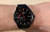 Браслет из нержавеющей стали с чёрным PVD-покрытиемPVDУльтратонкое покрытие наносится в технике вакуумного напыления, сочетает в себе нитрид титана особой прочности со слоем золота или оксида хрома. Несёт в себе декоративную или защитную функцию. и раскладывающейся застёжкойРаскладная застёжкаТакой тип застёжки используется только на браслетах из металла. Она никогда не раскрывается полностью, происходит разделение на 2 и более частей. Раскладывающая застёжка снизит вероятность потери часов к минимуму. обеспечивает комфортное ношение.
