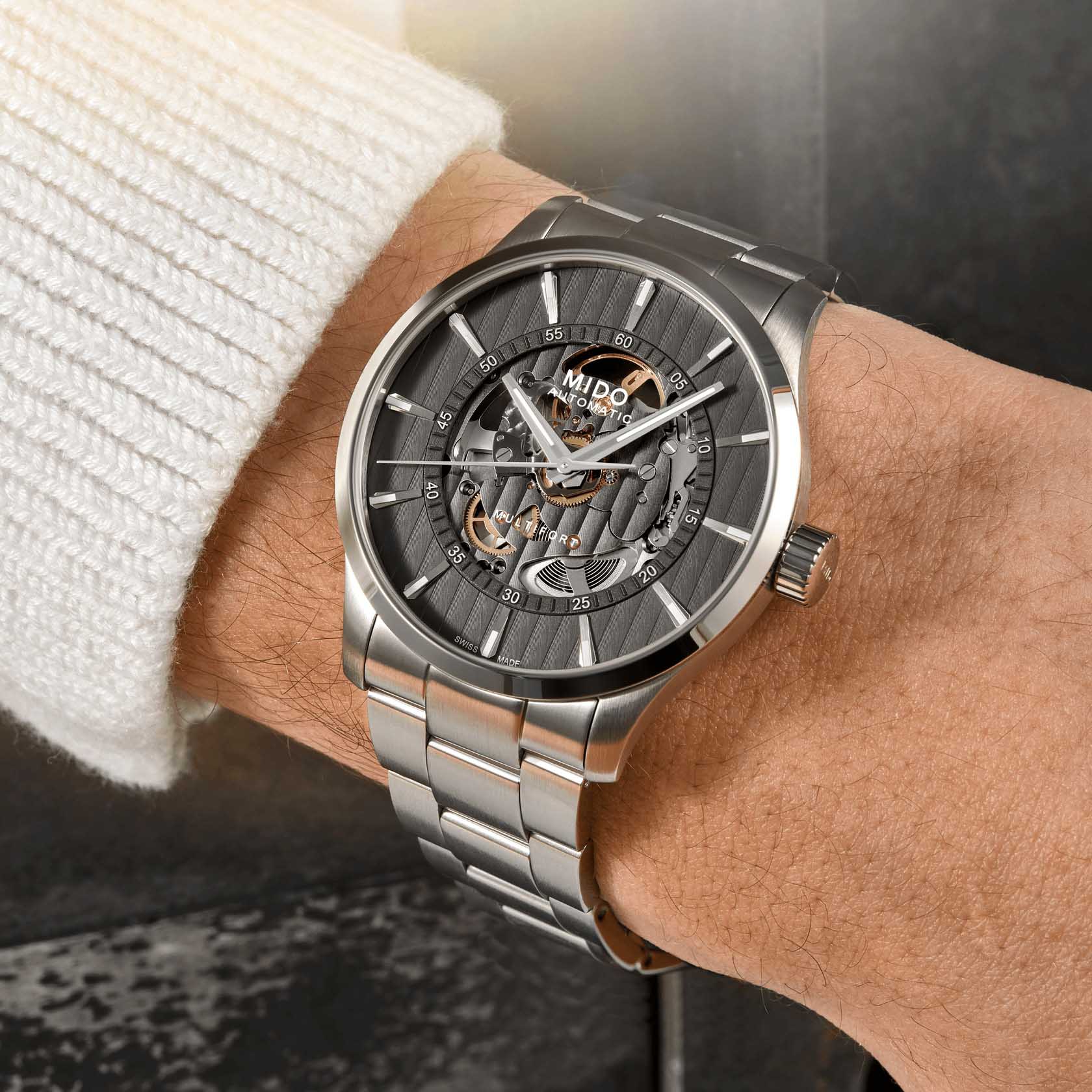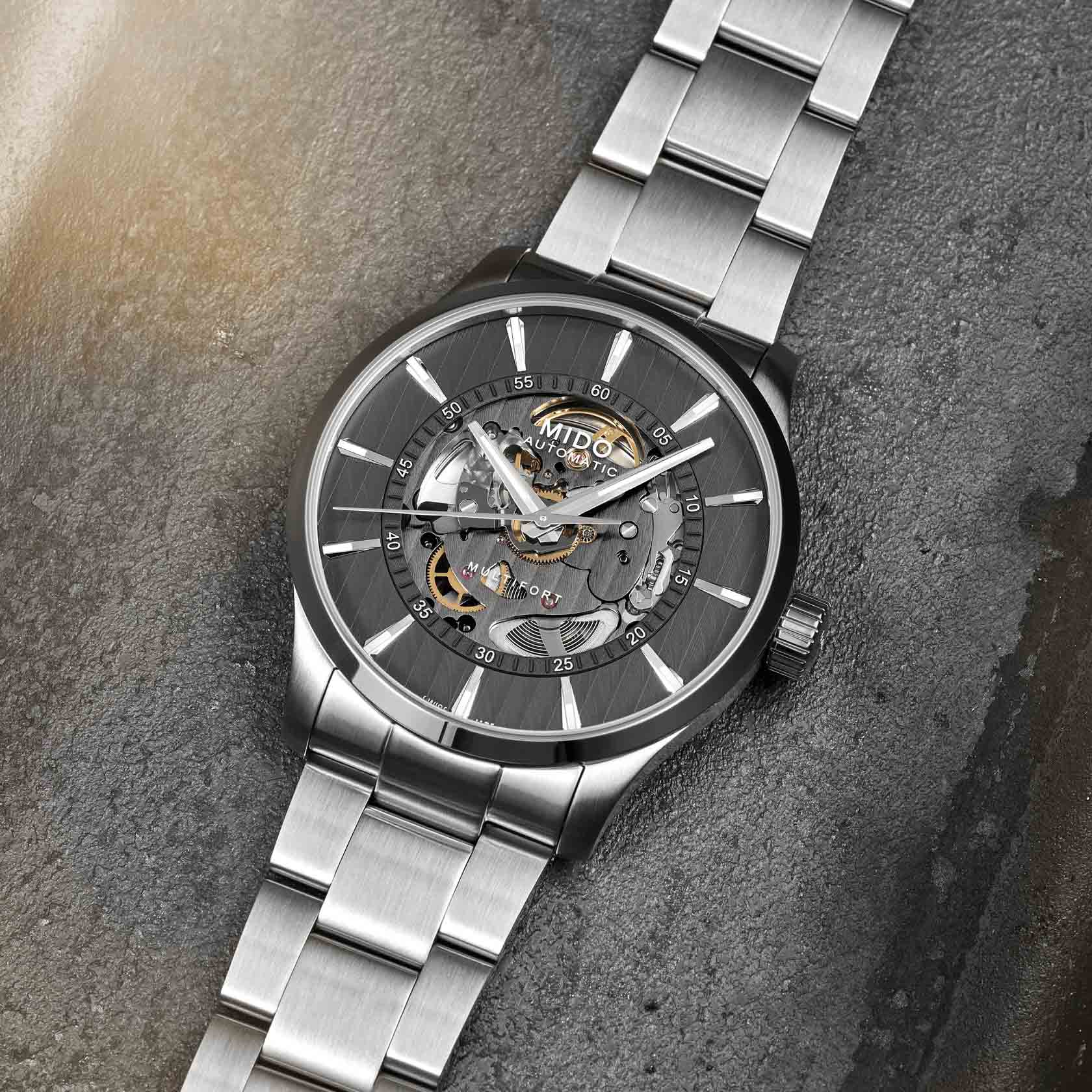 Швейцарские мужские механические часы Mido Multifort Skeleton Vertigo M038.436.11.061.00