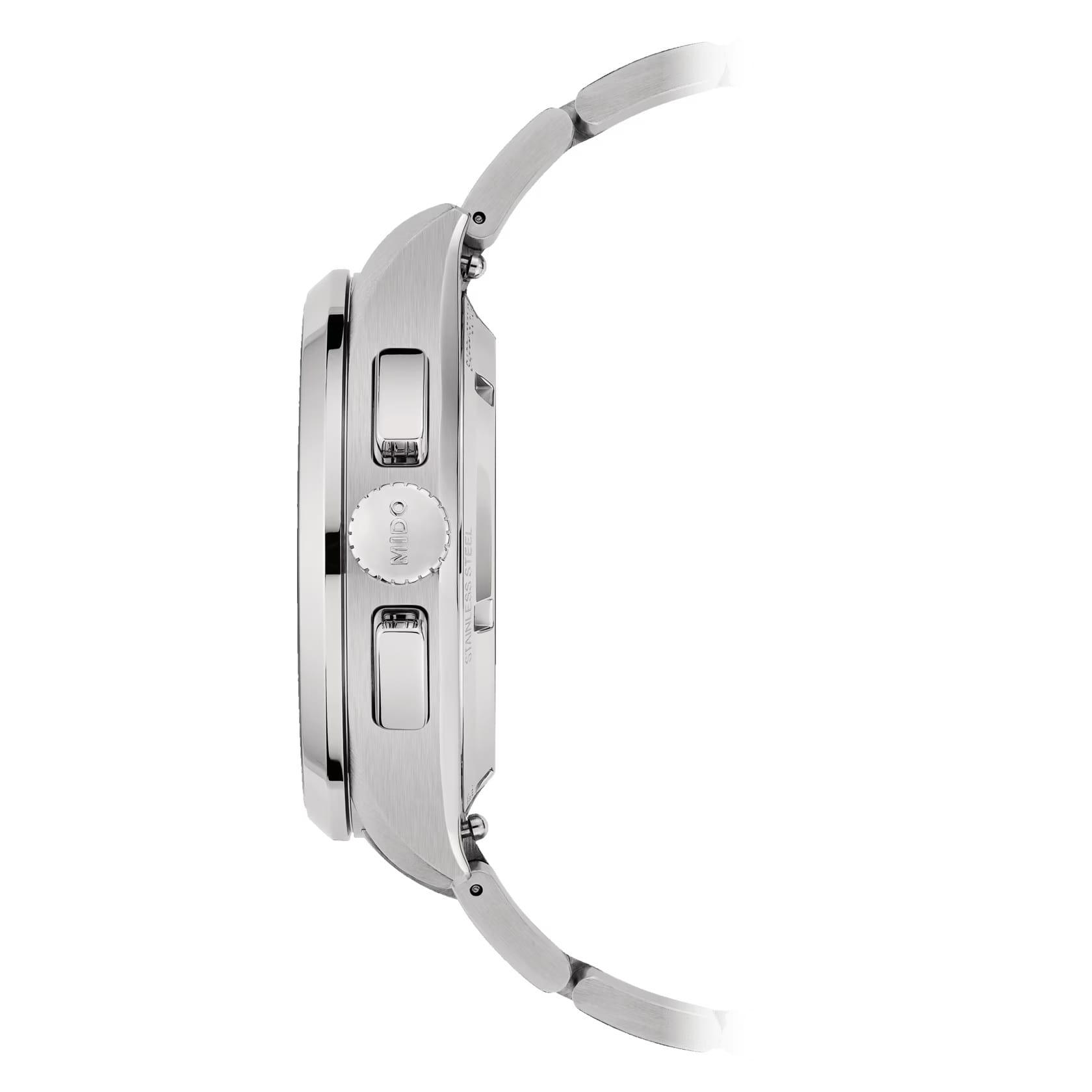 Швейцарские мужские наручные часы Mido Multifort Skeleton Chronograph M038.662.11.060.00, механический механизм с высокой точностью. Циферблат c сапфировым стекломСапфировое стеклоПрочный и надёжный материал из кристалла сапфира синтетического происхождения, характеризующийся особой твёрдостью и устойчивостью к царапинам и повреждениям., устойчивым к появлению царапин и обладающее высокой прозрачностью. Часы оснащены люминесцентным покрытиемЛюминесцентное покрытиеПозволяет считывать показания времени в темноте. Производители наносят на стрелки, часовые индексы, безель или поверхность циферблата светонакопительный состав, дающий холодное свечение., обеспечивающим отличную видимость даже при слабом освещении. Класс водозащиты: 100 метров, позволит плавать, нырять и заниматься другими водными видами спорта. Корпус часов изготовлен из стали. Часы с балансом из Nivachron™Nivachron™Специально разработанный инновационный сплав Nivachron™ повышает устойчивость часов к воздействию магнитных полей., обеспечивающим высокую устойчивость к магнитным полям и ударам. Часы с функциями хронографаХронографФункция позволяет измерять отрезки времени с особой точностью: часы, минуты, секунды. Верным признаком хронографа является наличие на циферблате 3 дополнительных окошек-счётчиков. и тахиметраТахиметрРазмеченная шкала, располагается на ободке или безеле часов. Тахиметр позволяет рассчитать скорость на определённом участке пути, расстояние измеряется в километрах или милях.. Браслет из стали с раскладной застёжкойРаскладная застёжкаТакой тип застёжки используется только на браслетах из металла. Она никогда не раскрывается полностью, происходит разделение на 2 и более частей. Раскладывающая застёжка снизит вероятность потери часов к минимуму. обеспечивает комфортное ношение.