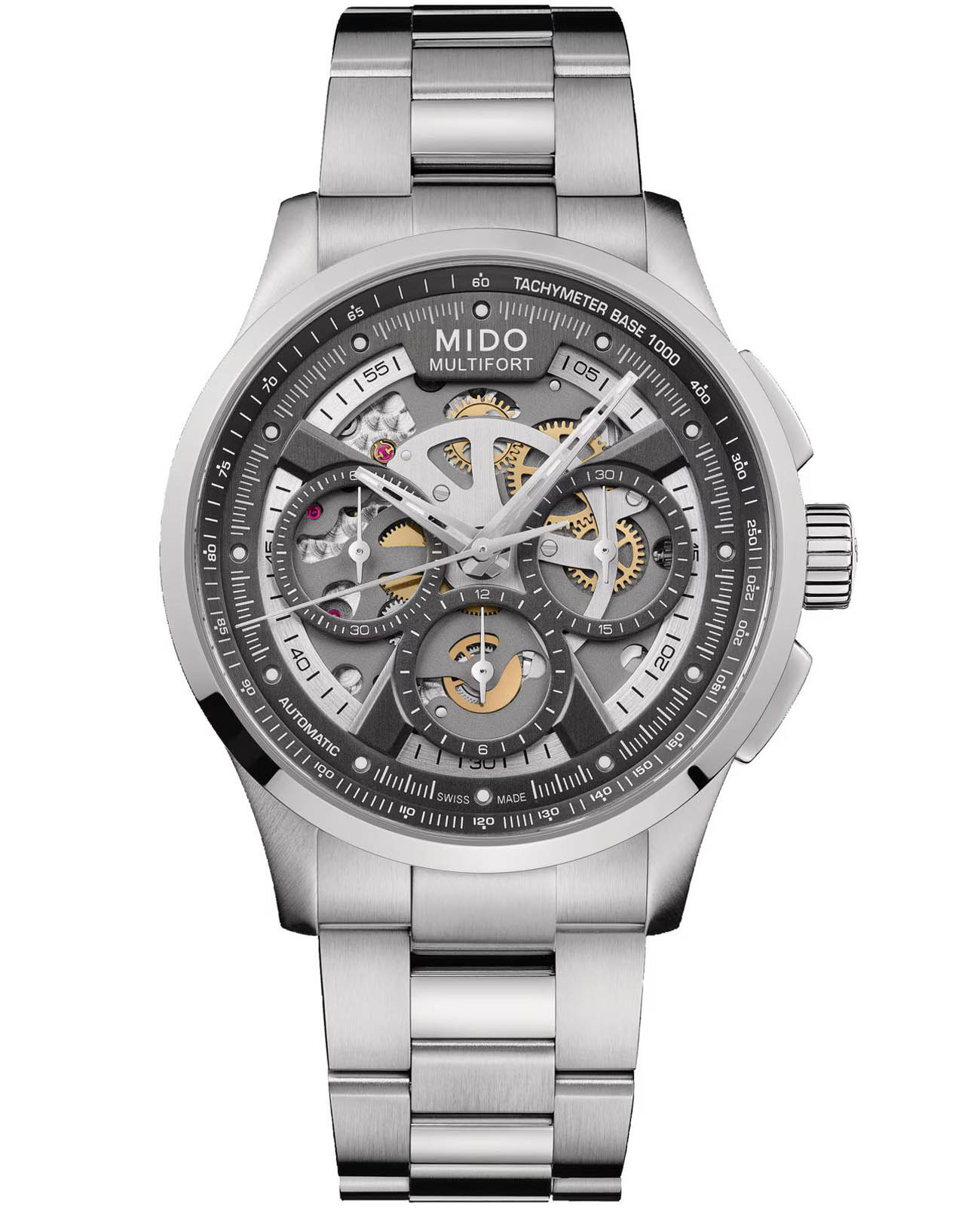 Швейцарские мужские механические часы Mido Multifort Skeleton Chronograph M038.662.11.060.00 с хронографом