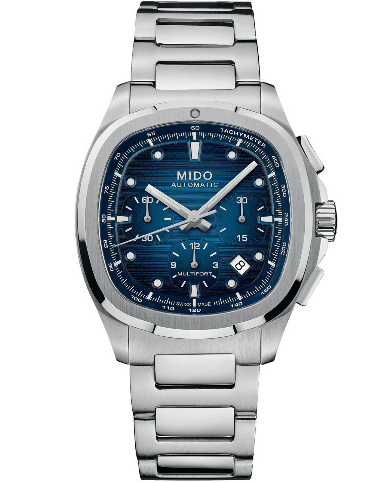 Мужские механические швейцарские часы Mido Multifort TV Chronograph M049.527.11.041.00, механический механизм с высокой точностью. Сапфировое стеклоСапфировое стеклоПрочный и надёжный материал из кристалла сапфира синтетического происхождения, характеризующийся особой твёрдостью и устойчивостью к царапинам и повреждениям. устойчивое к появлению царапин, обладающее высокой прозрачностью. Корпус часов изготовлен из нержавеющей стали.  В механизм внедрена пружина баланса Nivachron™Nivachron™Специально разработанный инновационный сплав Nivachron™ повышает устойчивость часов к воздействию магнитных полей.. Стрелки с люминесцентным покрытиемЛюминесцентное покрытиеПозволяет считывать показания времени в темноте. Производители наносят на стрелки, часовые индексы, безель или поверхность циферблата светонакопительный состав, дающий холодное свечение.. Окошко даты в положении между 4 и 6 часами. Класс водозащиты: 100 метров, позволит плавать, нырять и заниматься другими водными видами спорта. Стальной браслет на раскладной застёжкеРаскладная застёжкаТакой тип застёжки используется только на браслетах из металла. Она никогда не раскрывается полностью, происходит разделение на 2 и более частей. Раскладывающая застёжка снизит вероятность потери часов к минимуму..Часы с функциями хронографаХронографФункция позволяет измерять отрезки времени с особой точностью: часы, минуты, секунды. Верным признаком хронографа является наличие на циферблате 3 дополнительных окошек-счётчиков. и тахиметраТахиметрРазмеченная шкала, располагается на ободке или безеле часов. Тахиметр позволяет рассчитать скорость на определённом участке пути, расстояние измеряется в километрах или милях.. Поставляются с дополнительным ремешком, что обеспечивает еще большую универсальность и комфорт.