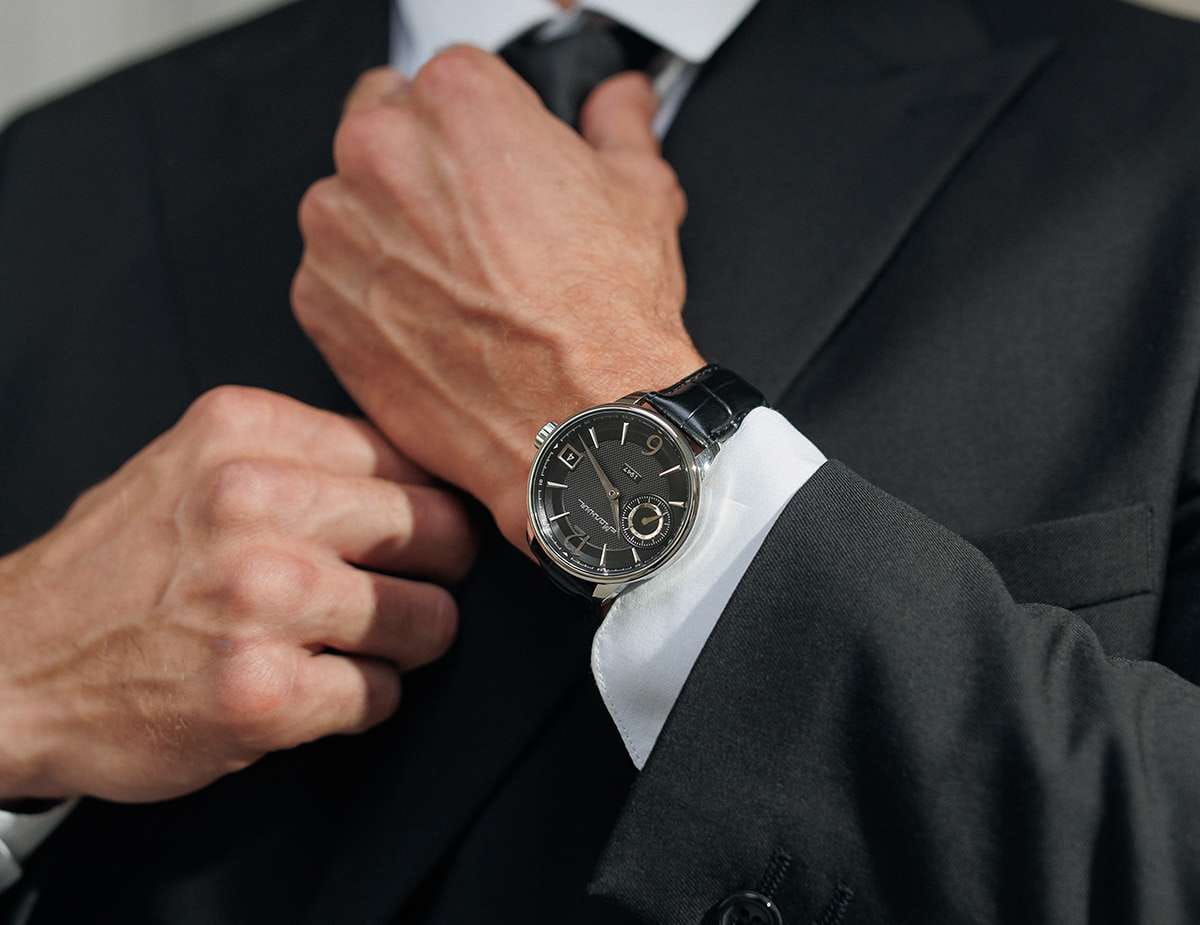 Мужские механические часы с ручным подзаводом — это аксессуар от легендарного бренда «МОЛНИЯ», созданный на Челябинском часовом заводе. Корпус диаметром 41 мм выполнен из нержавеющей стали 316L с зеркальной полировкой. Циферблат чёрного цвета оформлен арабскими цифрами и стальными индексами. Малая секундная стрелка вынесена на позицию 9 часов, окошко даты расположено в положении 3 часов. Циферблат защищён сапфировым стекломСапфировое стеклоПрочный и надёжный материал из кристалла сапфира синтетического происхождения, характеризующийся особой твёрдостью и устойчивостью к царапинам и повреждениям.. Механизм — мануфактурный калибр 3605, собранный вручную. Прозрачная задняя крышка позволяет наблюдать за работой механизма. Часы оснащены кожаным ремешком чёрного цвета с раскладной застёжкойРаскладная застёжкаТакой тип застёжки используется только на браслетах из металла. Она никогда не раскрывается полностью, происходит разделение на 2 и более частей. Раскладывающая застёжка снизит вероятность потери часов к минимуму. и системой быстрой замены. Водонепроницаемость 100 м позволяет использовать часы для плавания и повседневного ношения. Идеальный выбор для тех, кто ценит российское качество и традиции.