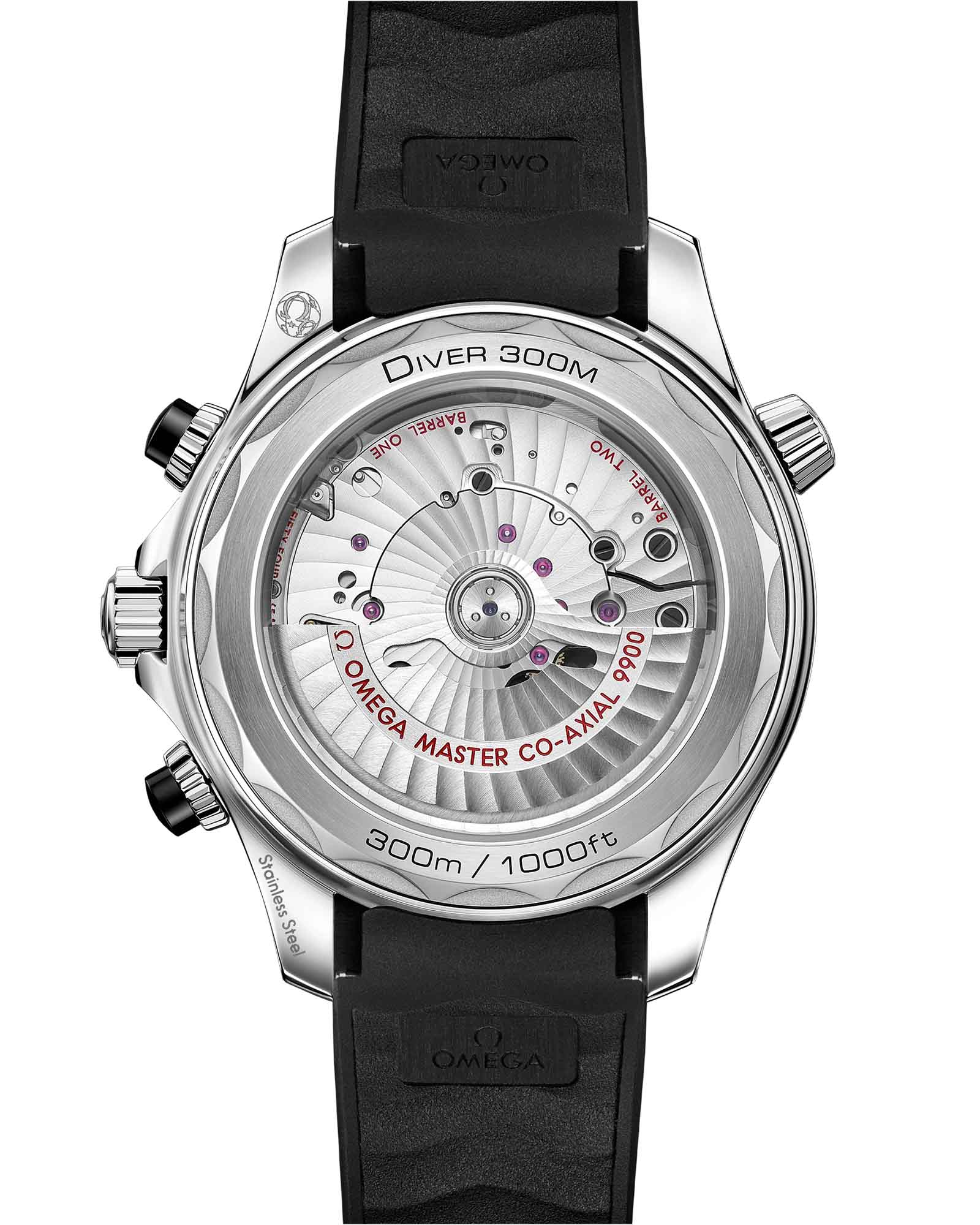 Легендарные часы Seamaster Professional Diver 300M, впервые представленные в 1993 году, произвели революцию в мире профессиональных дайверских хронометров. Современная коллекция мастерски сочетает богатое морское наследие с передовыми технологиями и фирменным швейцарским дизайном OMEGA. Этот хронографХронографФункция позволяет измерять отрезки времени с особой точностью: часы, минуты, секунды. Верным признаком хронографа является наличие на циферблате 3 дополнительных окошек-счётчиков. с впечатляющим диаметром 44 мм облачен в корпус из нержавеющей стали, дополненный полированным черным керамическим безлемБезельВнешний ободок, закрепляющий стекло. В спортивных часах так называется поворотное кольцо с делениями на циферблате, выполняет роль таймера – замеряет отрезки времени на шкале. Неподвижный безель – элемент декора. Однонаправленно вращающийся безель на дайверских часах позволяет фиксировать моменты погружения и выныривания на поверхность. с износостойкой дайверской шкалой. Кнопки управления и керамический циферблат украшены изысканным волнообразным узором, выполненным лазерной гравировкой, а на позиции "6 часов" расположено элегантное окошко индикатора даты. Стрелки счетчиков покрыты благородным родием, в то время как основные стрелки и индексы с люминесцентным покрытием Super-LumiNovaЛюминесцентное покрытиеПозволяет считывать показания времени в темноте. Производители наносят на стрелки, часовые индексы, безель или поверхность циферблата светонакопительный состав, дающий холодное свечение. обеспечивают превосходную читаемость в любых условиях. Модель завершает стильный черный каучуковый ремешок, подчеркивающий спортивный характер часов. Через сапфировое стеклоСапфировое стеклоПрочный и надёжный материал из кристалла сапфира синтетического происхождения, характеризующийся особой твёрдостью и устойчивостью к царапинам и повреждениям. задней крышки с волнообразным профилем можно наблюдать за работой высокоточного калибра OMEGA Master Chronometer 9900 - истинного воплощения швейцарского часового мастерства.