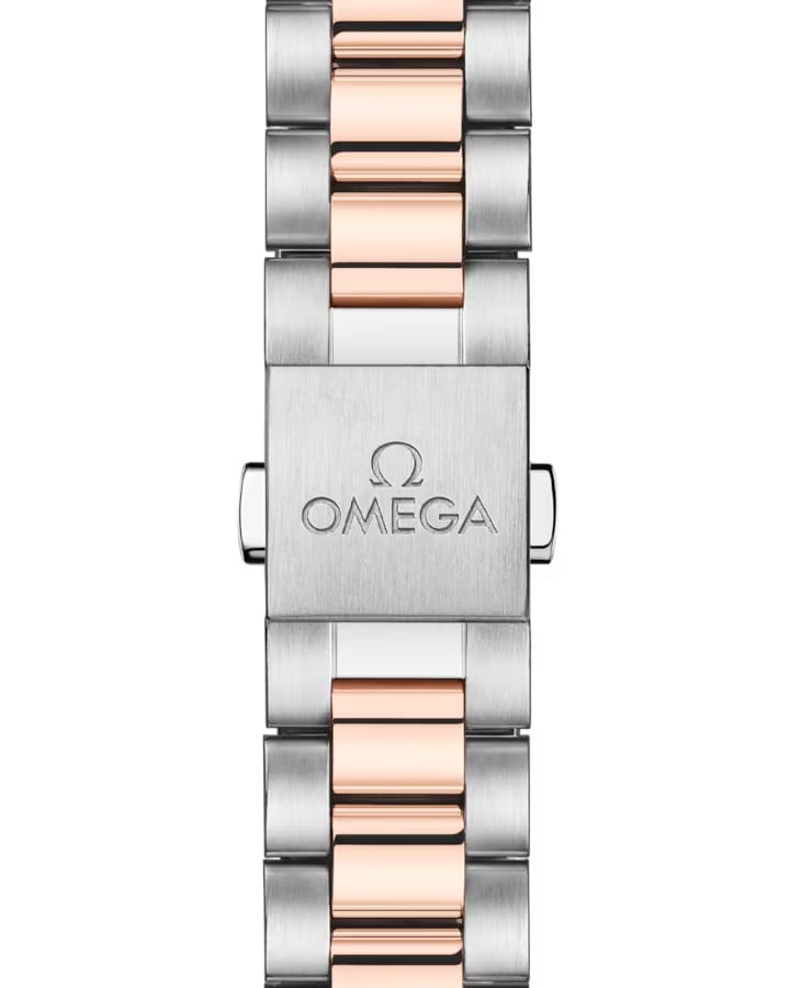 Omega Seamaster Aqua Terra выполнены в симметричном корпусе из нержавеющей стали и 18K Sedna™ золота с завинчивающейся задней крышкой, украшенной волновым узором. Циферблат розового оттенка дополнен окошком даты на 6 часах, окаймлённым кольцом из 18K Sedna™ золота. Стрелки и метки выполнены из 18K Sedna™ золота и оснащены люминесцентным покрытиемЛюминесцентное покрытиеПозволяет считывать показания времени в темноте. Производители наносят на стрелки, часовые индексы, безель или поверхность циферблата светонакопительный состав, дающий холодное свечение. Super-LumiNova для лучшей читаемости в темноте. Индексы выполнены в форме корпусов парусников — деталь, подчёркивающая морское наследие коллекции. Калибр Omega 8800 сертифицирован как Master Chronometer — гарантия высочайшей точности и устойчивости к магнитным полям. Запас хода составляет 55 часов. Защиту циферблата обеспечивает сапфировое стеклоСапфировое стеклоПрочный и надёжный материал из кристалла сапфира синтетического происхождения, характеризующийся особой твёрдостью и устойчивостью к царапинам и повреждениям. с антибликовым покрытиемАнтибликовое покрытиеСлой оксида металла в 0,13-0,3 микрон, благодаря которому стекло часов не бликует и не отражает свет. Антибликовое покрытие уменьшает отражение света в 10 раз, обеспечивая отличную читаемость показателей циферблата. с обеих сторон. Водозащита позволяет использовать часы в воде без риска повреждения.. Часы установлены на браслет из нержавеющей стали и 18K Sedna™ золота с раскладной застёжкойРаскладная застёжкаТакой тип застёжки используется только на браслетах из металла. Она никогда не раскрывается полностью, происходит разделение на 2 и более частей. Раскладывающая застёжка снизит вероятность потери часов к минимуму.. Это сочетание премиального качества, технологичности и классического дизайна.