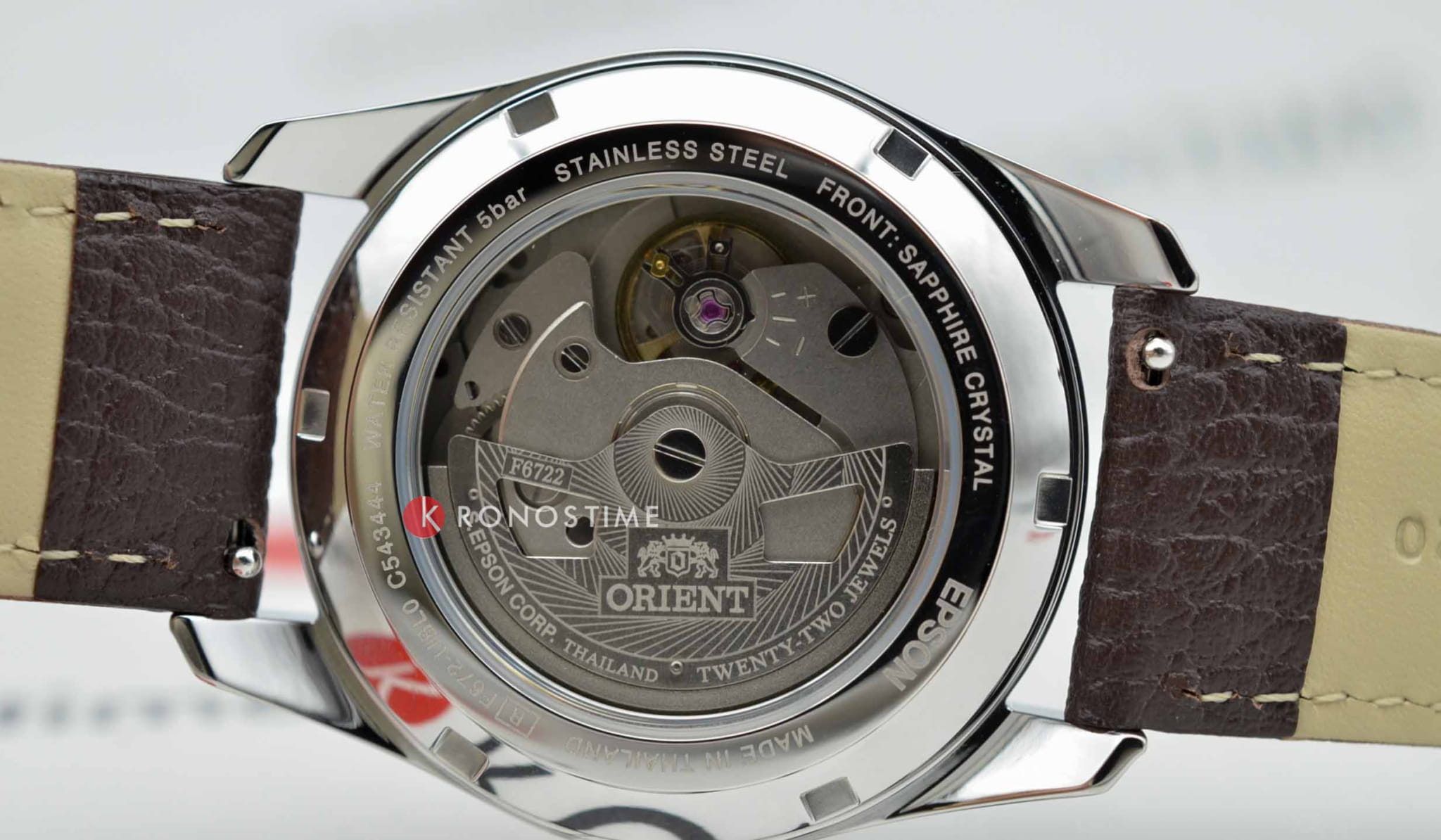 Orient Classic Automatic RA-AC0R03Y – элегантные механические часы, сочетающие классический дизайн и современные технологии. Корпус диаметром 38,5 мм выполнен из нержавеющей стали, обеспечивая долговечность и стильный внешний вид. Серебристый с лаконичными метками и стрелками защищён сапфировым стекломСапфировое стеклоПрочный и надёжный материал из кристалла сапфира синтетического происхождения, характеризующийся особой твёрдостью и устойчивостью к царапинам и повреждениям., устойчивым к царапинам. БезельБезельВнешний ободок, закрепляющий стекло. В спортивных часах так называется поворотное кольцо с делениями на циферблате, выполняет роль таймера – замеряет отрезки времени на шкале. Неподвижный безель – элемент декора. Однонаправленно вращающийся безель на дайверских часах позволяет фиксировать моменты погружения и выныривания на поверхность. с PVD-покрытиемPVDУльтратонкое покрытие наносится в технике вакуумного напыления, сочетает в себе нитрид титана особой прочности со слоем золота или оксида хрома. Несёт в себе декоративную или защитную функцию.. Часы оснащены автоматическим механизмом Orient с калибром F6722. Функциональность включает индикацию даты, расположенной в окне на отметке «3 часа». Водозащита до 50 метров (5 бар) делает модель подходящей для повседневного использования, защищая её от случайных брызг. Часы с люминесцентным покрытиемЛюминесцентное покрытиеПозволяет считывать показания времени в темноте. Производители наносят на стрелки, часовые индексы, безель или поверхность циферблата светонакопительный состав, дающий холодное свечение., обеспечивающими мгновенное считывание времени даже в темноте. Кожаный ремешок на стандартной застежке, обеспечивающей комфортное ношение и надёжную фиксацию на запястье.