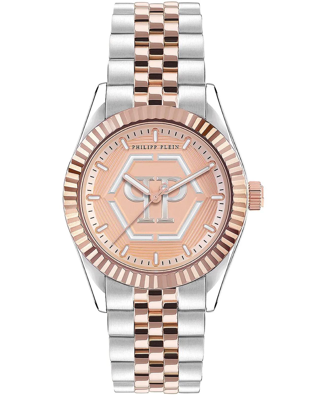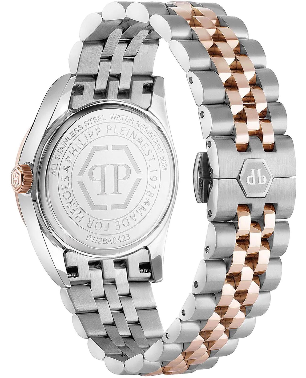 Стильные женские часы Philipp Plein Street Couture PW2BA0423 с надежным кварцевым механизмом. Корпус часов изготовлен из нержавеющей стали. Минеральное стеклоМинеральное стеклоМинеральное стекло представляет собой искусственно выращенный минерал кварца. Такое стекло отличается особой устойчивостью к повреждениям и царапинам. Уступает по некоторым качествам сапфировому стеклу. устойчивое к мелким механическим повреждениям. Влагозащита: 50 метров, позволит защитить корпус от случайных брызг или капель дождя. Стрелки и метки с люминесцентным покрытиемЛюминесцентное покрытиеПозволяет считывать показания времени в темноте. Производители наносят на стрелки, часовые индексы, безель или поверхность циферблата светонакопительный состав, дающий холодное свечение.. Стальной браслет на застёжке-бабочке с кнопкамиЗастёжка "бабочка"Такой вид застёжки дополняется предохранителями, помогающими избежать случайного раскрытия браслета. Обладают изящным исполнением. . БезельБезельВнешний ободок, закрепляющий стекло. В спортивных часах так называется поворотное кольцо с делениями на циферблате, выполняет роль таймера – замеряет отрезки времени на шкале. Неподвижный безель – элемент декора. Однонаправленно вращающийся безель на дайверских часах позволяет фиксировать моменты погружения и выныривания на поверхность. с IP-покрытиемIP-покрытиеМетод ионного напыления. Демонстрирует повышенную устойчивость к истиранию, окислению и химическим веществам. Под воздействием высокого давления и температуры около 1500°C молекулы металла надёжно соединяются с частицами корпуса часов..