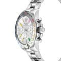 Яркие женские часы-хронографХронографФункция позволяет измерять отрезки времени с особой точностью: часы, минуты, секунды. Верным признаком хронографа является наличие на циферблате 3 дополнительных окошек-счётчиков. с секундомеромСекундомерСекундоме́р — прибор, способный измерять интервалы времени с точностью до долей секунды. Philipp Plein Nobile Lady PWSBA0123, кварцевый механизм с высокой точностью. 12 и 24-часовой формат времени. Класс водозащиты: 50 метров, позволит защитить корпус от случайных брызг или капель дождя. Корпус и браслет часов изготовлены из нержавеющей стали. Стрелки с люминесцентным покрытиемЛюминесцентное покрытиеПозволяет считывать показания времени в темноте. Производители наносят на стрелки, часовые индексы, безель или поверхность циферблата светонакопительный состав, дающий холодное свечение.. Стальной браслет на застёжке-бабочке с кнопкамиЗастёжка "бабочка"Такой вид застёжки дополняется предохранителями, помогающими избежать случайного раскрытия браслета. Обладают изящным исполнением. . Циферблат инкрустирован кристаллами Preciosa.