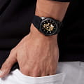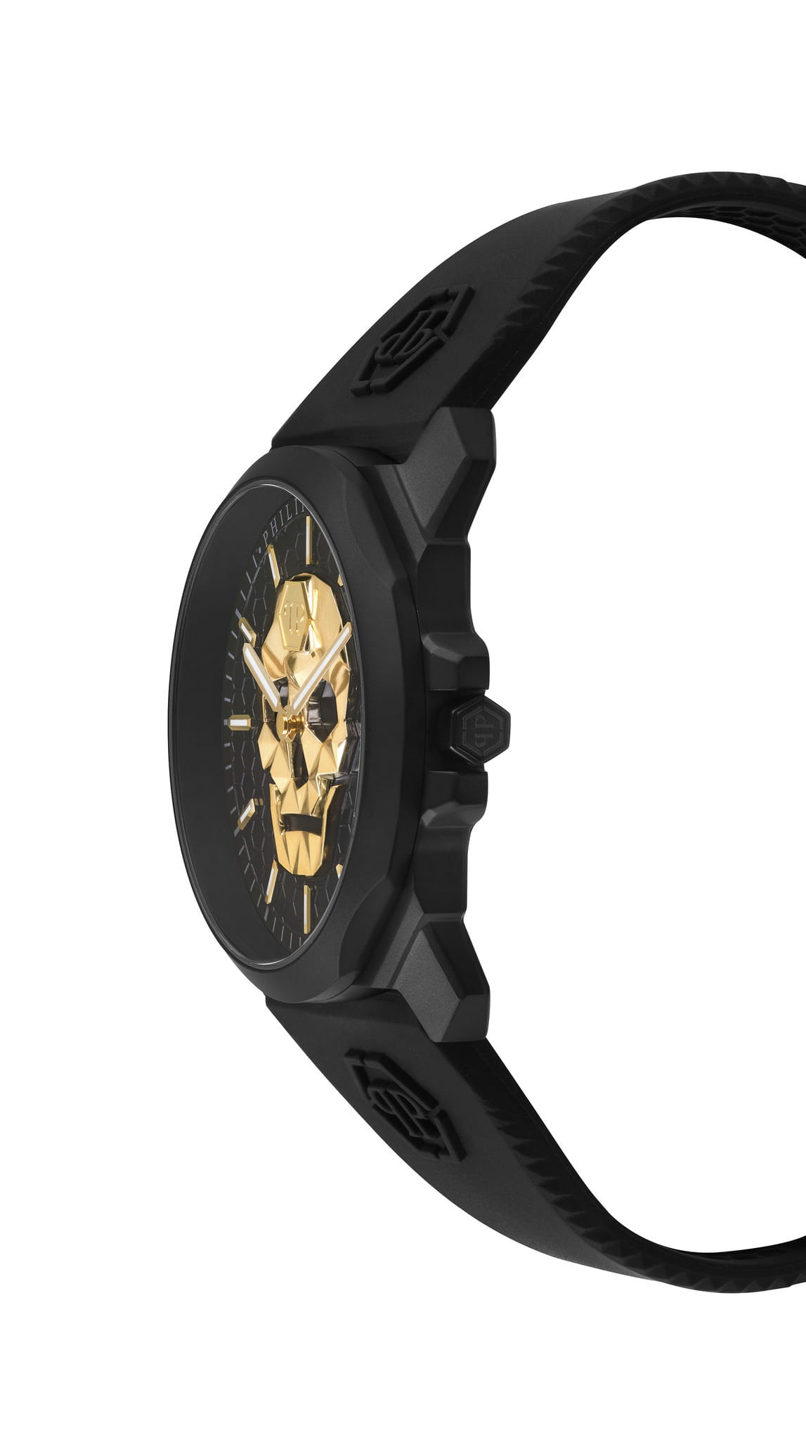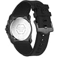 Мужские кварцевые часы с фирменным изображением черепа Philipp Plein The Skull King PWLAA0322, кварцевый механизм с высокой точностью. Класс водозащиты: 50 метров, позволит защитить корпус от случайных брызг или капель дождя. Корпус часов изготовлен из стали с IP-покрытиемIP-покрытиеМетод ионного напыления. Демонстрирует повышенную устойчивость к истиранию, окислению и химическим веществам. Под воздействием высокого давления и температуры около 1500°C молекулы металла надёжно соединяются с частицами корпуса часов. черного цвета. Черный силиконовый ремешок шириной 26 мм, стандартная застежка. Прочное минеральное стеклоМинеральное стеклоМинеральное стекло представляет собой искусственно выращенный минерал кварца. Такое стекло отличается особой устойчивостью к повреждениям и царапинам. Уступает по некоторым качествам сапфировому стеклу. устойчивое к мелким механическим повреждениям.