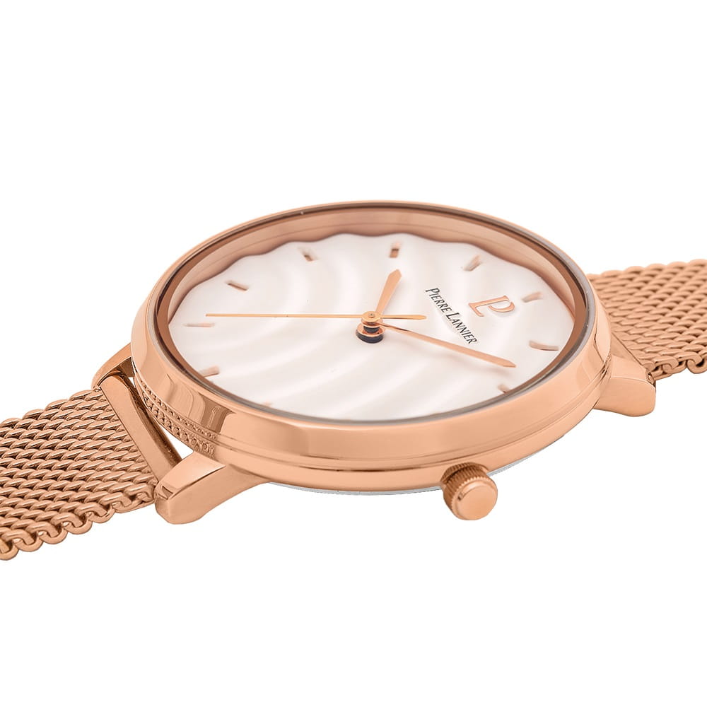 Женские кварцевые часы Pierre Lannier Betty Blanc 065L708. Центральные часовая,минутная и секундная стрелки. Круглый корпус выполнен из полированной нержавеющей стали с IP-покрытиемIP-покрытиеМетод ионного напыления. Демонстрирует повышенную устойчивость к истиранию, окислению и химическим веществам. Под воздействием высокого давления и температуры около 1500°C молекулы металла надёжно соединяются с частицами корпуса часов.. Стальной браслет на раскладная застёжкаРаскладная застёжкаТакой тип застёжки используется только на браслетах из металла. Она никогда не раскрывается полностью, происходит разделение на 2 и более частей. Раскладывающая застёжка снизит вероятность потери часов к минимуму. с IP-покрытиемIP-покрытиеМетод ионного напыления. Демонстрирует повышенную устойчивость к истиранию, окислению и химическим веществам. Под воздействием высокого давления и температуры около 1500°C молекулы металла надёжно соединяются с частицами корпуса часов.. Фасетчатое минеральное стеклоМинеральное стеклоМинеральное стекло представляет собой искусственно выращенный минерал кварца. Такое стекло отличается особой устойчивостью к повреждениям и царапинам. Уступает по некоторым качествам сапфировому стеклу., устойчивое к мелким механическим повреждениям. Водостойкость:30 метров, позволит защитить корпус от случайных брызг или капель дождя.
