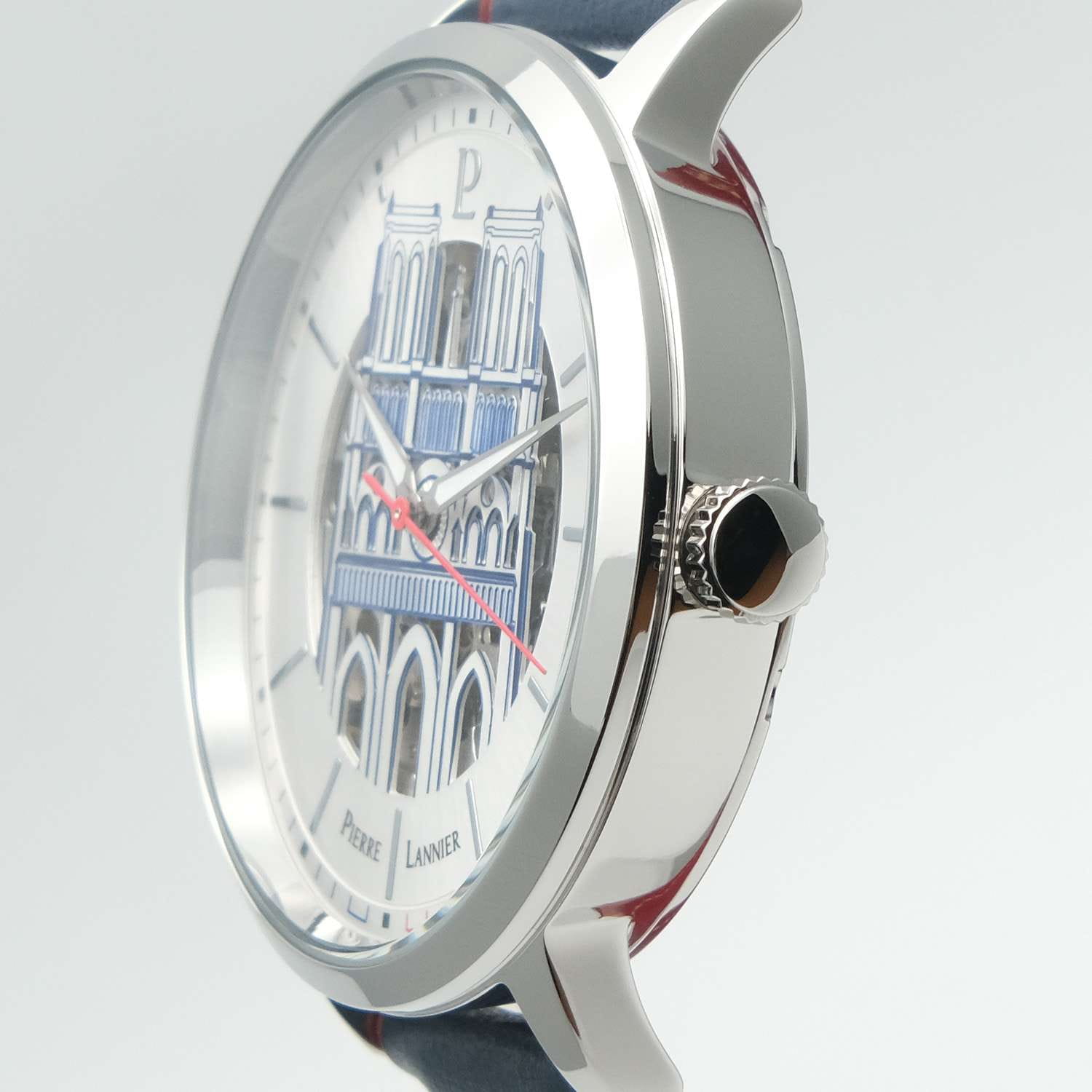 Мужские кварцевые часы Pierre Lannier 300A126 — элегантный дань французской архитектуре. Корпус из нержавеющей стали, диаметром 42 мм. Циферблат скелетонизированный — серый с изображением собора Нотр-Дам. Стрелки с люминесцентным покрытиемЛюминесцентное покрытиеПозволяет считывать показания времени в темноте. Производители наносят на стрелки, часовые индексы, безель или поверхность циферблата светонакопительный состав, дающий холодное свечение.. Стекло — минеральноеМинеральное стеклоМинеральное стекло представляет собой искусственно выращенный минерал кварца. Такое стекло отличается особой устойчивостью к повреждениям и царапинам. Уступает по некоторым качествам сапфировому стеклу., устойчивое к мелким повреждениям. Ремешок — синий кожаный на стандартной застёжке. Водонепроницаемость 50 м. Идеальный выбор для тех, кто ценит французский дизайн и культурное наследие.