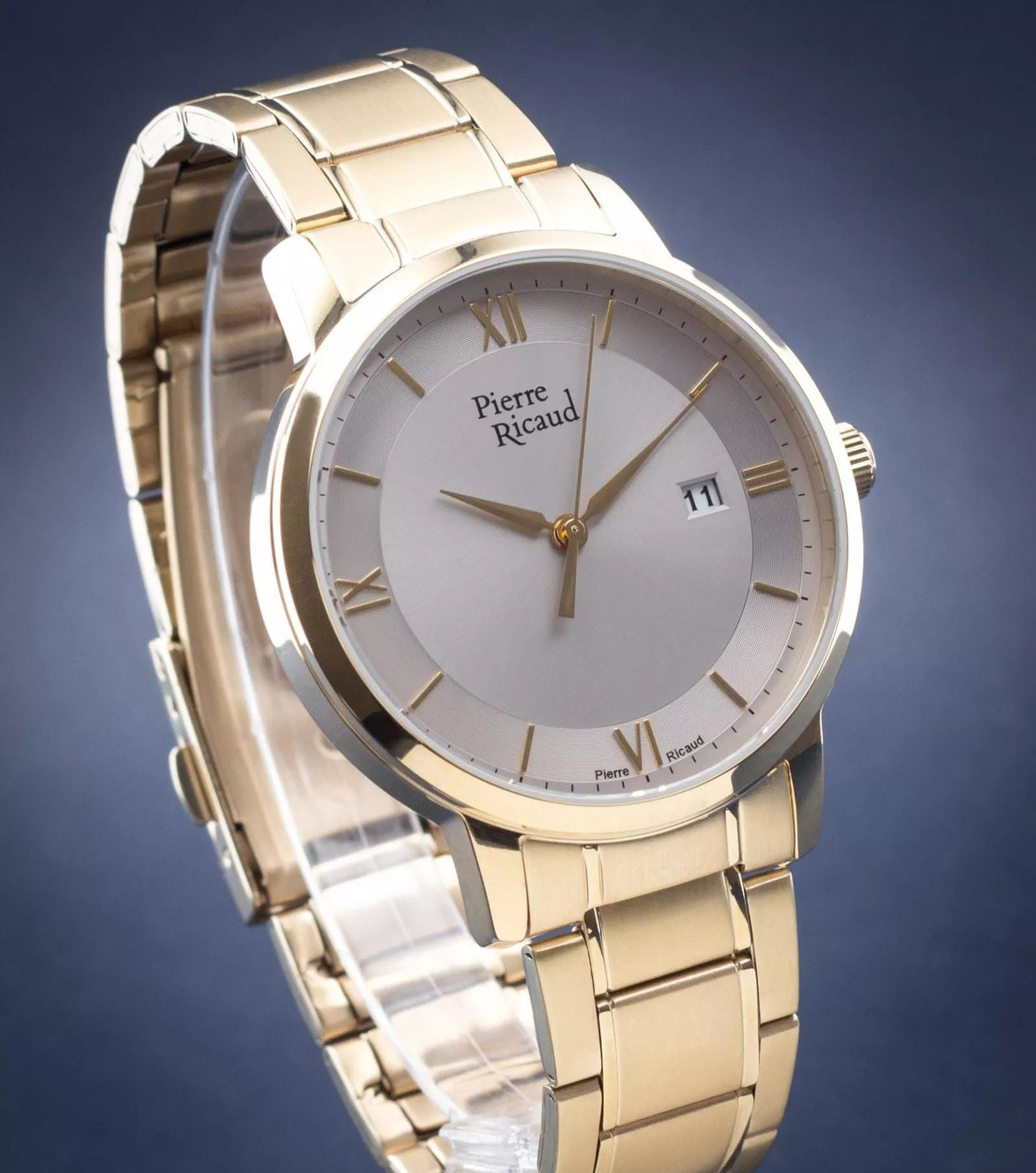 Мужские кварцевые часы с минеральным стекломМинеральное стеклоМинеральное стекло представляет собой искусственно выращенный минерал кварца. Такое стекло отличается особой устойчивостью к повреждениям и царапинам. Уступает по некоторым качествам сапфировому стеклу. Pierre Ricaud P97239.1167Q, кварцевый механизм с высокой точностью. Класс водозащиты: 50 метров, позволит защитить корпус от случайных брызг или капель дождя. Корпус часов изготовлен из стали с IP-покрытиемIP-покрытиеМетод ионного напыления. Демонстрирует повышенную устойчивость к истиранию, окислению и химическим веществам. Под воздействием высокого давления и температуры около 1500°C молекулы металла надёжно соединяются с частицами корпуса часов.. Стальной браслет на раскладной застёжкеРаскладная застёжкаТакой тип застёжки используется только на браслетах из металла. Она никогда не раскрывается полностью, происходит разделение на 2 и более частей. Раскладывающая застёжка снизит вероятность потери часов к минимуму. с IP-покрытиемIP-покрытиеМетод ионного напыления. Демонстрирует повышенную устойчивость к истиранию, окислению и химическим веществам. Под воздействием высокого давления и температуры около 1500°C молекулы металла надёжно соединяются с частицами корпуса часов.. Окошко даты находится в положении 3 часа.
