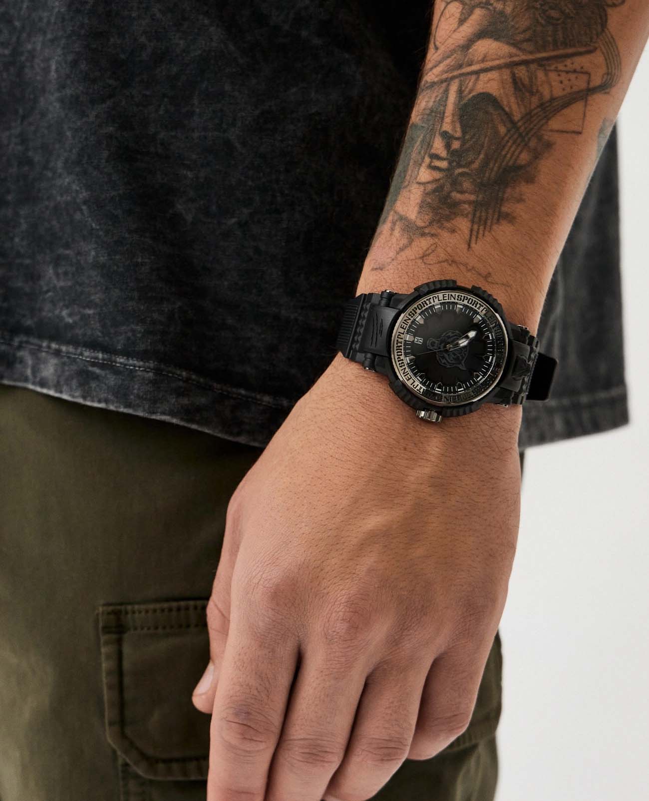 Эти часы Plein Sport PSEDA0324 являются изысканным и функциональным изделием, выполненным из высококачественной стали с IP-покрытиемIP-покрытиеМетод ионного напыления. Демонстрирует повышенную устойчивость к истиранию, окислению и химическим веществам. Под воздействием высокого давления и температуры около 1500°C молекулы металла надёжно соединяются с частицами корпуса часов., которая отличается исключительной устойчивостью к коррозии. Минеральное стеклоМинеральное стеклоМинеральное стекло представляет собой искусственно выращенный минерал кварца. Такое стекло отличается особой устойчивостью к повреждениям и царапинам. Уступает по некоторым качествам сапфировому стеклу.. Конструкция часов включает в себя специальный защитный элемент, предотвращающий случайное повреждение механизма. Стрелки и метки с люминесцентным покрытиемЛюминесцентное покрытиеПозволяет считывать показания времени в темноте. Производители наносят на стрелки, часовые индексы, безель или поверхность циферблата светонакопительный состав, дающий холодное свечение..