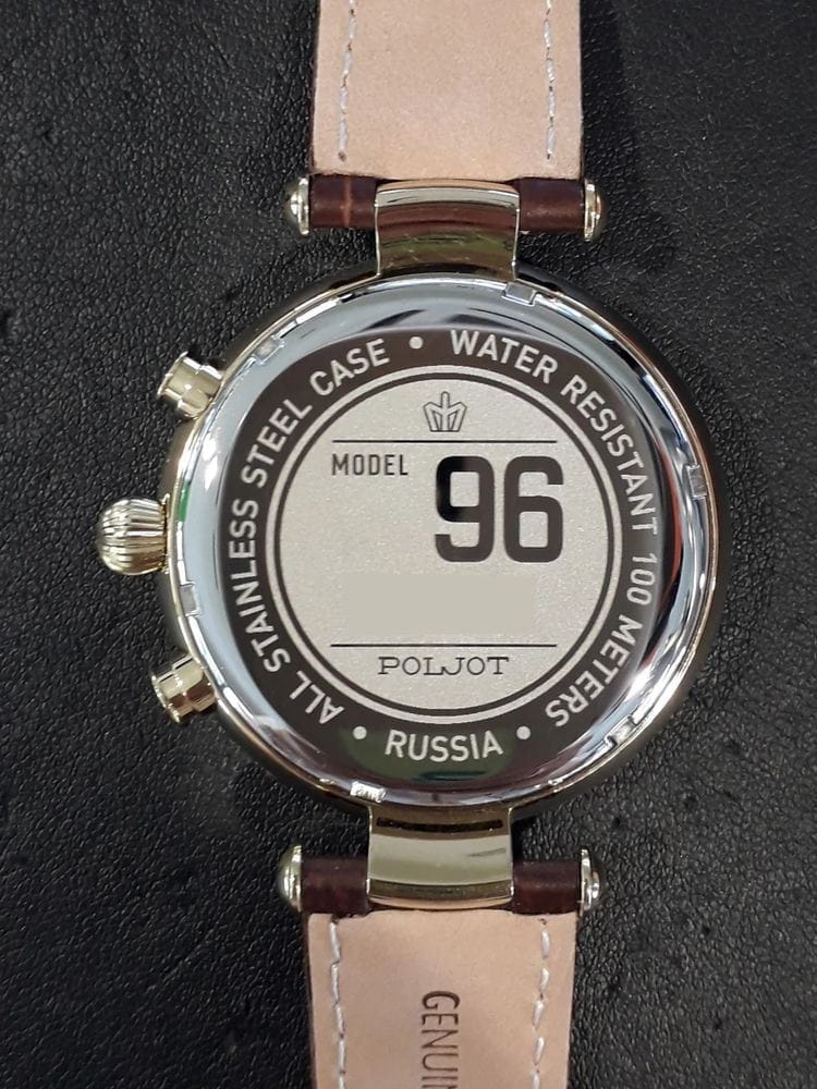 Poljot 6S21.966055 “Baikal” — элегантные кварцевые мужские часы, в которых классическая строгость сочетается с выразительным российским характером. Корпус из нержавеющей стали с PVD-покрытиемPVDУльтратонкое покрытие наносится в технике вакуумного напыления, сочетает в себе нитрид титана особой прочности со слоем золота или оксида хрома. Несёт в себе декоративную или защитную функцию. с крупными декоративными ушками придаёт модели солидность и узнаваемость, а глубокий циферблат с контрастными стрелками подчёркивает точность и функциональность. Два дополнительных счётчика хронографаХронографФункция позволяет измерять отрезки времени с особой точностью: часы, минуты, секунды. Верным признаком хронографа является наличие на циферблате 3 дополнительных окошек-счётчиков. обеспечивают измерение времени с высокой точностью, а окно даты добавляет практичности. Прочное минеральное стеклоМинеральное стеклоМинеральное стекло представляет собой искусственно выращенный минерал кварца. Такое стекло отличается особой устойчивостью к повреждениям и царапинам. Уступает по некоторым качествам сапфировому стеклу. защищает циферблат от царапин, а ремешок из натуральной кожи с классической пряжкой гарантирует комфорт и надёжную фиксацию на запястье. Poljot “Baikal” — это сочетание традиций, надёжности и уверенного стиля, созданное для мужчин, ценящих точность и благородную сдержанность.