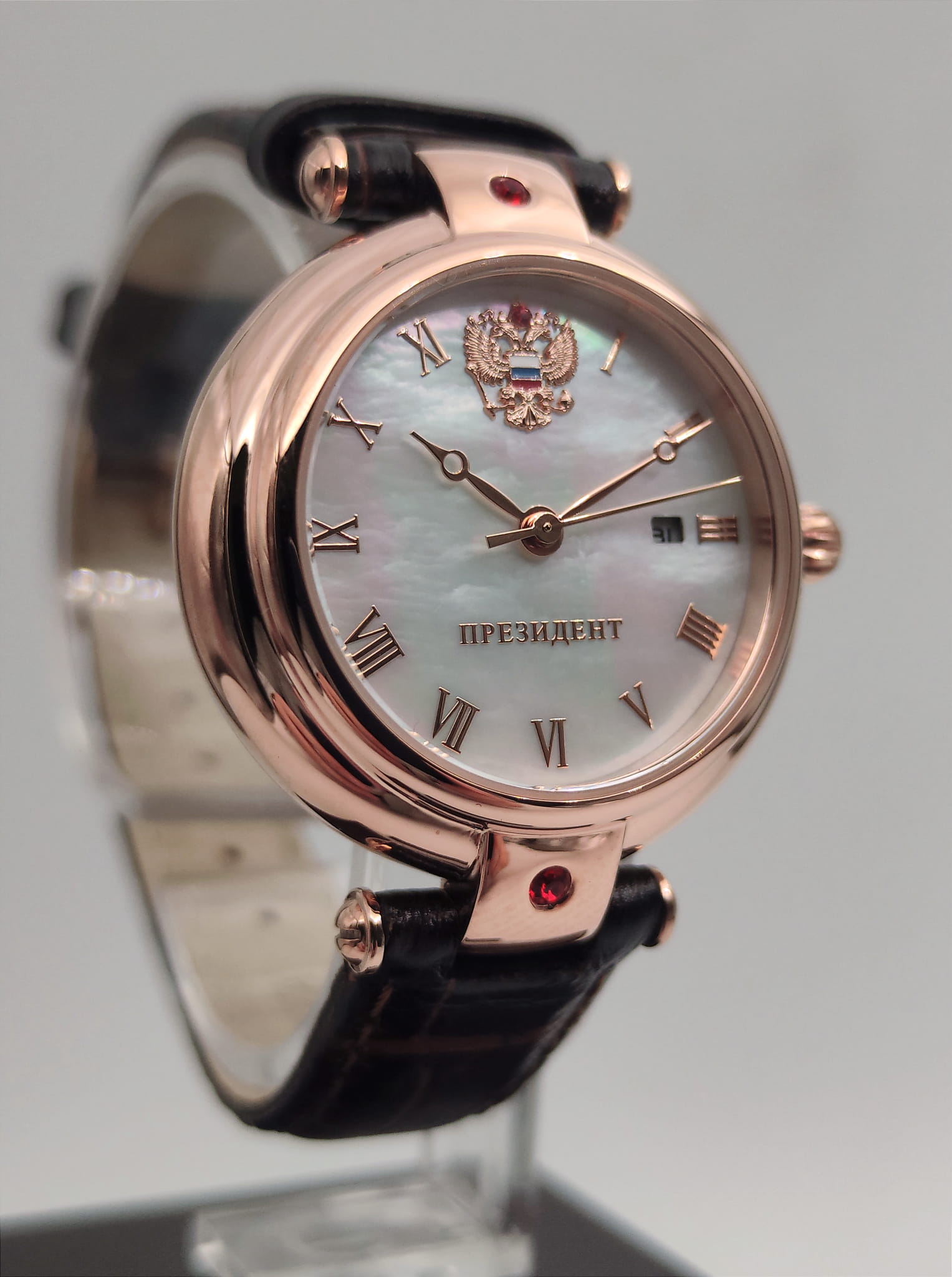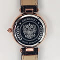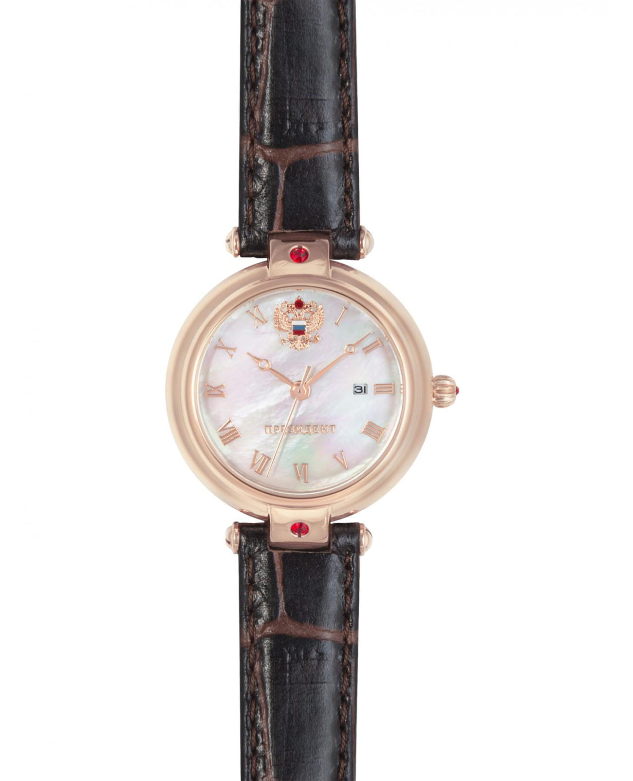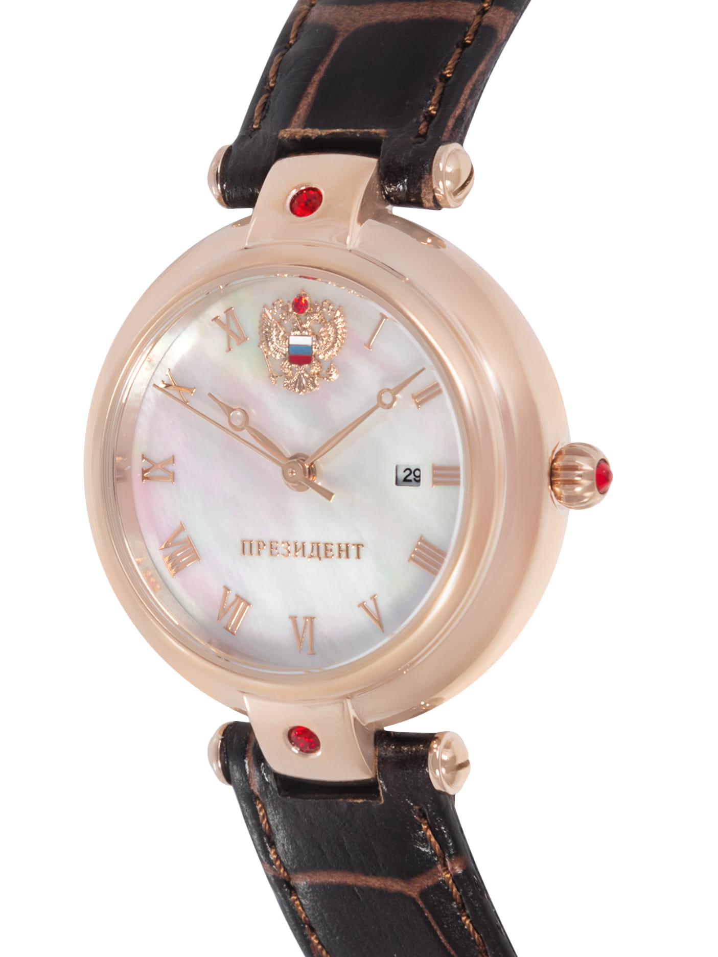 Часы «Президент» модели 5039113 — это женские механические наручные часы с автоподзаводом, сочетающие элегантный дизайн и надёжность. Механизм: японский механизм Miyota 6T15 с автоподзаводом, обеспечивающий точность и долговечность. Функции: часы, минуты, секунды, дата. Корпус: из нержавеющей стали с покрытием розового золотаPVDУльтратонкое покрытие наносится в технике вакуумного напыления, сочетает в себе нитрид титана особой прочности со слоем золота или оксида хрома. Несёт в себе декоративную или защитную функцию., диаметром 30 мм и толщиной 10 мм. Циферблат: перламутровый с римскими цифрами и кристаллами , подчёркивающий утончённость модели. Стекло: минеральноеМинеральное стеклоМинеральное стекло представляет собой искусственно выращенный минерал кварца. Такое стекло отличается особой устойчивостью к повреждениям и царапинам. Уступает по некоторым качествам сапфировому стеклу., устойчивое к царапинам. Водонепроницаемость: 3 ATM (30 метров), защищает от случайных брызг и дождя. Ремешок: кожаный, шириной 14 мм, обеспечивающий комфорт при ношении. Эти часы идеально подойдут для женщин, ценящих сочетание классического стиля и современных технологий.