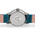Аксессуар премиальной категории сразу бросается в глаза благодаря насыщенному бирюзовому исполнению. Отдельную привлекательность представляет собой узорчатый циферблат с перламутровой вставкой, декорированный 21 бриллиантами в 0,060 карат. Корпус и безель сделаны из плазменной керамикиВысокотехнологичная плазменная керамикаИнновационный материал, технология запатентована. Выплавление керамики осуществляется в печи при 20 000 °C, белоснежный материал под воздействием ультравысокой температуры приобретает уникальный блеск, присущий металлам., что обеспечивает максимально комфортное ношение. Кварцевый механизм ETA F05.841. Сапфировое стекло с антибликовой поверхностью. Задняя крышка с гравировкой. Кожаный ремешок из натурального материала. Миниатюрное окошко отображает фазы луны. Диаметр корпуса: 35 мм.