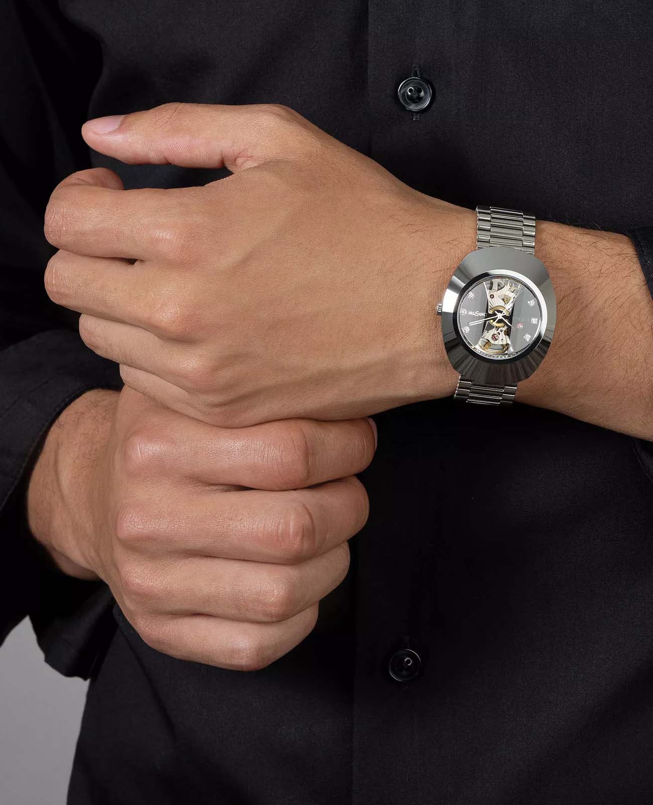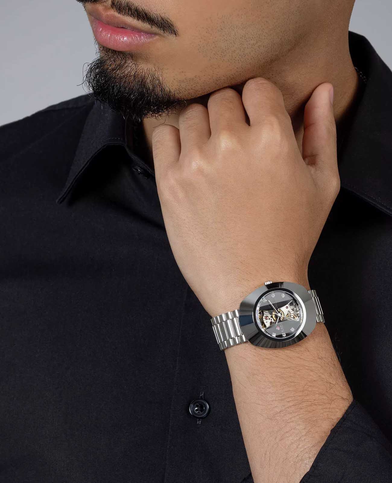 Мужские механические часы-скелетоны с автоподзаводом Rado DiaStar The Original Automatic R12063103. Корпус часов выполнен из нержавеющей стали. Стрелки с люминесцентным покрытиемЛюминесцентное покрытиеПозволяет считывать показания времени в темноте. Производители наносят на стрелки, часовые индексы, безель или поверхность циферблата светонакопительный состав, дающий холодное свечение. Super-LumiNova. Класс водозащиты: 100 метров, позволит плавать, нырять и заниматься другими водными видами спорта. Стальной браслет на застёжке-бабочке с кнопкамиЗастёжка "бабочка"Такой вид застёжки дополняется предохранителями, помогающими избежать случайного раскрытия браслета. Обладают изящным исполнением. .