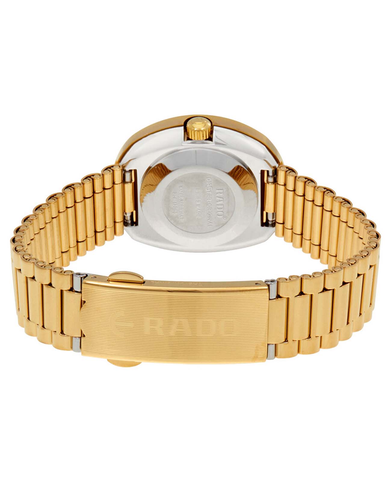 Женские механические швейцарские часы с автоподзаводом Rado The Original R12416643, кварцевый механизм с высокой точностью. Сапфировое стеклоСапфировое стеклоПрочный и надёжный материал из кристалла сапфира синтетического происхождения, характеризующийся особой твёрдостью и устойчивостью к царапинам и повреждениям. устойчивое к появлению царапин, обладающее высокой прозрачностью. Корпус и браслет часов выполнены из нержавеющей стали c PVD-покрытиемPVDУльтратонкое покрытие наносится в технике вакуумного напыления, сочетает в себе нитрид титана особой прочности со слоем золота или оксида хрома. Несёт в себе декоративную или защитную функцию.. Циферблат инкрустирован кристаллами. Класс водозащиты: 30 метров, позволит защитить корпус от случайных брызг или капель дождя. Браслет на раскладной застёжкеРаскладная застёжкаТакой тип застёжки используется только на браслетах из металла. Она никогда не раскрывается полностью, происходит разделение на 2 и более частей. Раскладывающая застёжка снизит вероятность потери часов к минимуму..