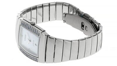 Часы Rado Sintra R13579912, произведение искусства и технологическое чудо, станут прекрасным дополнением к коллекции. Эти швейцарские часы оснащены кварцевым механизмом с указателем даты и тремя стрелками, заключенным в корпус из нержавеющей стали. Браслет изготовлен из высокотехнологичной керамикиВысокотехнологичная керамикаИнновационный запатентованный Rado материал с гладкой или матовой поверхностью. Керамика за счёт кристаллической структуры обладает повышенной устойчивостью от возникновения царапин. Материал способен принимать температуру тела человека, обеспечивая невероятный комфорт при ношении. с раскладной застёжкойРаскладная застёжкаТакой тип застёжки используется только на браслетах из металла. Она никогда не раскрывается полностью, происходит разделение на 2 и более частей. Раскладывающая застёжка снизит вероятность потери часов к минимуму.. Корпус украшен 48 бриллиантами (0,50 карата). Сапфировое стеклоСапфировое стеклоПрочный и надёжный материал из кристалла сапфира синтетического происхождения, характеризующийся особой твёрдостью и устойчивостью к царапинам и повреждениям. устойчивое к появлению царапин, обладающее высокой прозрачностью. Класс водозащиты: 30 метров, позволит защитить корпус от случайных брызг или капель дождя.