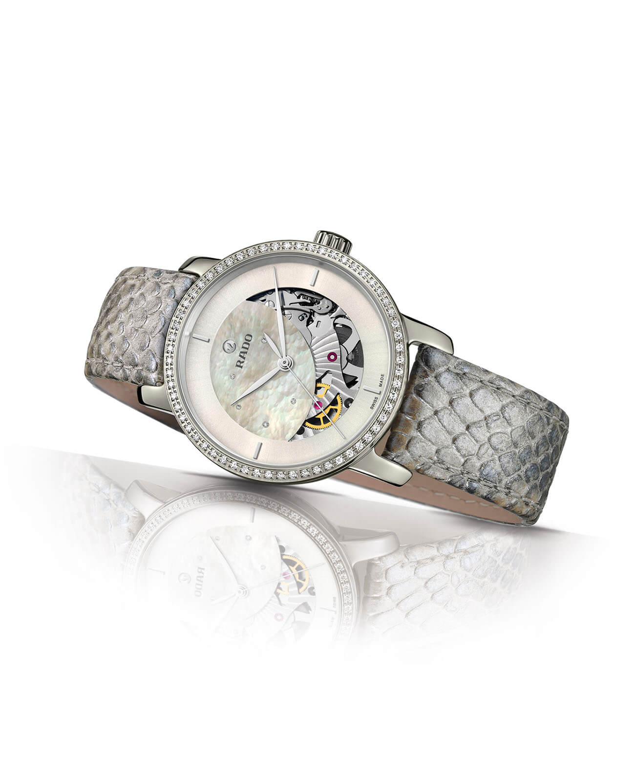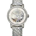 Дизайн модели является действительно роскошным - светлый циферблат дополнен двумя окружностями, декорированными сияющими драгоценными камнями. Безель украшен 60 бриллиантами, а скелетонизированное отверстие, сквозь которое просматривается движение деталей механизма, инкрустировано 5 бриллиантами в 0,004 и 0,002 карат. Часы оснащены автоматическим калибром ETA C07.631 с увеличенным резервом хода до 80 часов. Сапфировое стекло с антибликовой обработкой. Корпус из плазменной керамики