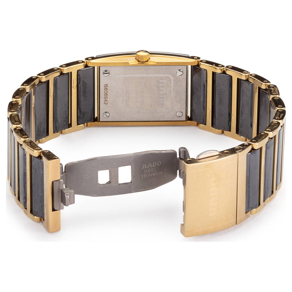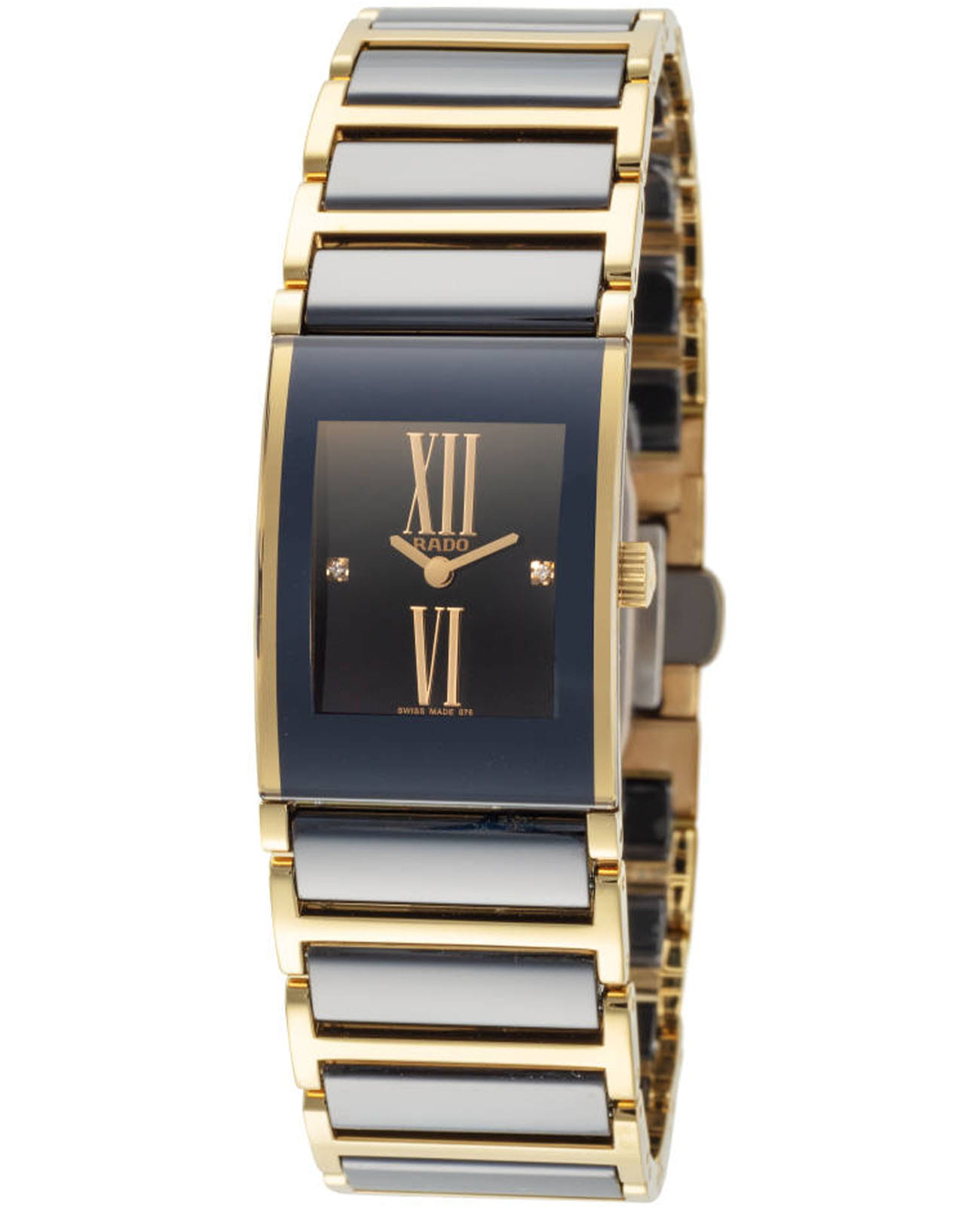 Женские часы Rado Integral R20789762 с надёжным кварцевым механизмом. Сапфировое стеклоСапфировое стеклоПрочный и надёжный материал из кристалла сапфира синтетического происхождения, характеризующийся особой твёрдостью и устойчивостью к царапинам и повреждениям. устойчивое к мелким механическим повреждениям. Корпус выполнен из нержавеющей стали с PVD-покрытиемPVDУльтратонкое покрытие наносится в технике вакуумного напыления, сочетает в себе нитрид титана особой прочности со слоем золота или оксида хрома. Несёт в себе декоративную или защитную функцию.. Класс водозащиты: 30 метров, позволит защитить корпус от случайных брызг или капель дождя. Стальной браслет с PVD-покрытиемPVDУльтратонкое покрытие наносится в технике вакуумного напыления, сочетает в себе нитрид титана особой прочности со слоем золота или оксида хрома. Несёт в себе декоративную или защитную функцию. с вставками из высокотехнологичной керамикиВысокотехнологичная керамикаИнновационный запатентованный Rado материал с гладкой или матовой поверхностью. Керамика за счёт кристаллической структуры обладает повышенной устойчивостью от возникновения царапин. Материал способен принимать температуру тела человека, обеспечивая невероятный комфорт при ношении. на раскладной застёжкеРаскладная застёжкаТакой тип застёжки используется только на браслетах из металла. Она никогда не раскрывается полностью, происходит разделение на 2 и более частей. Раскладывающая застёжка снизит вероятность потери часов к минимуму.. Циферблат декорирован 2 бриллиантами