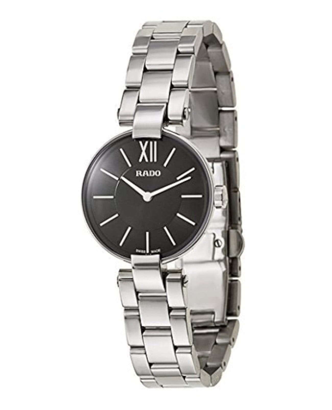 Швейцарские женские часы Rado Coupole Classic Diamonds R22854153, кварцевый механизм с высокой точностью. Сапфировое стеклоСапфировое стеклоПрочный и надёжный материал из кристалла сапфира синтетического происхождения, характеризующийся особой твёрдостью и устойчивостью к царапинам и повреждениям. устойчивое к появлению царапин, обладающее высокой прозрачностью. Корпус часов изготовлен из нержавеющей стали. Класс водозащиты: 50 метров, позволит защитить корпус от случайных брызг или капель дождя. Стальной браслет на застёжке-бабочке с кнопкамиЗастёжка "бабочка"Такой вид застёжки дополняется предохранителями, помогающими избежать случайного раскрытия браслета. Обладают изящным исполнением. .