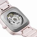 Женские механические часы с автоподзаводом Rado из коллекции True Square — это уникальное сочетание передовых технологий и высокого часового искусства. Корпус квадратной формы, размером 38 мм и толщиной 9,7 мм, выполнен из цельного блока высокотехнологичной керамикиВысокотехнологичная керамикаИнновационный запатентованный Rado материал с гладкой или матовой поверхностью. Керамика за счёт кристаллической структуры обладает повышенной устойчивостью от возникновения царапин. Материал способен принимать температуру тела человека, обеспечивая невероятный комфорт при ношении. розового цвета, что обеспечивает лёгкость, гипоаллергенность и исключительную прочность. Циферблат бежевого цвета с эффектом «солнечные лучи» оформлен накладными индексами розового золота, заполненными люминесцентным покрытиемЛюминесцентное покрытиеПозволяет считывать показания времени в темноте. Производители наносят на стрелки, часовые индексы, безель или поверхность циферблата светонакопительный состав, дающий холодное свечение. Super-Luminova®. Особенностью модели является скелетонизированная архитектура «open heart», через которую видны декорированные элементы механизма: кольцевая шлифовка на видимой части механизма и узор «Côtes de Genève» на плате. В центре циферблата — подвижный якорь розового цвета, символ бренда. Циферблат защищён плоским сапфировым стекломСапфировое стеклоПрочный и надёжный материал из кристалла сапфира синтетического происхождения, характеризующийся особой твёрдостью и устойчивостью к царапинам и повреждениям.. Механизм — автоматический с запасом хода 80 часов, 25 камнями и антимагнитной пружиной Nivachron™Nivachron™Специально разработанный инновационный сплав Nivachron™ повышает устойчивость часов к воздействию магнитных полей.. Часы оснащены браслетом из высокотехнологичной керамикиВысокотехнологичная керамикаИнновационный запатентованный Rado материал с гладкой или матовой поверхностью. Керамика за счёт кристаллической структуры обладает повышенной устойчивостью от возникновения царапин. Материал способен принимать температуру тела человека, обеспечивая невероятный комфорт при ношении. розового цвета с застёжкой «бабочка» с кнопкамиЗастёжка "бабочка"Такой вид застёжки дополняется предохранителями, помогающими избежать случайного раскрытия браслета. Обладают изящным исполнением. из титана. Водонепроницаемость 50 м позволяет использовать часы в повседневных условиях. Гарантия — 2 года. Идеальный выбор для тех, кто ценит инновации, дизайн и швейцарское качество.