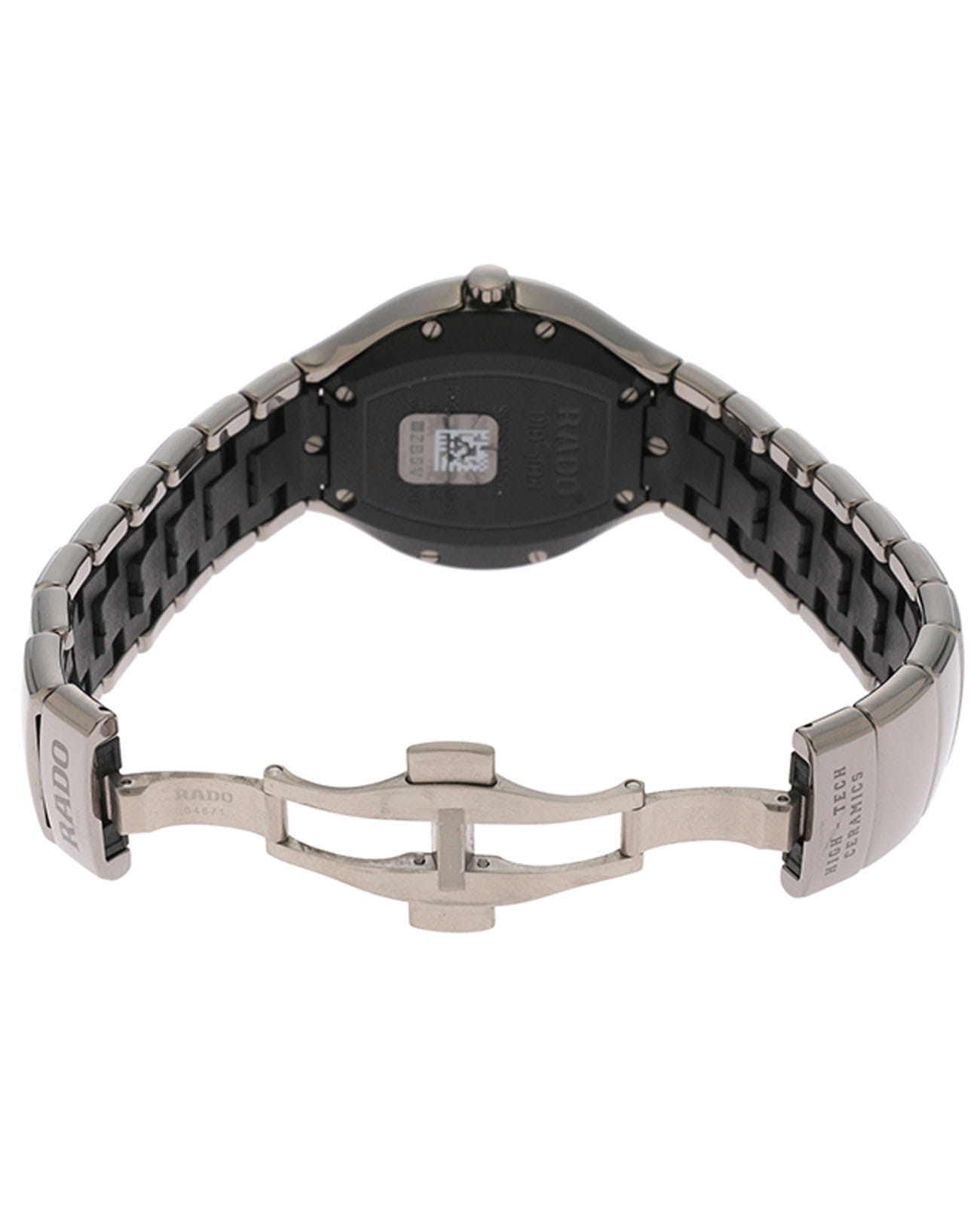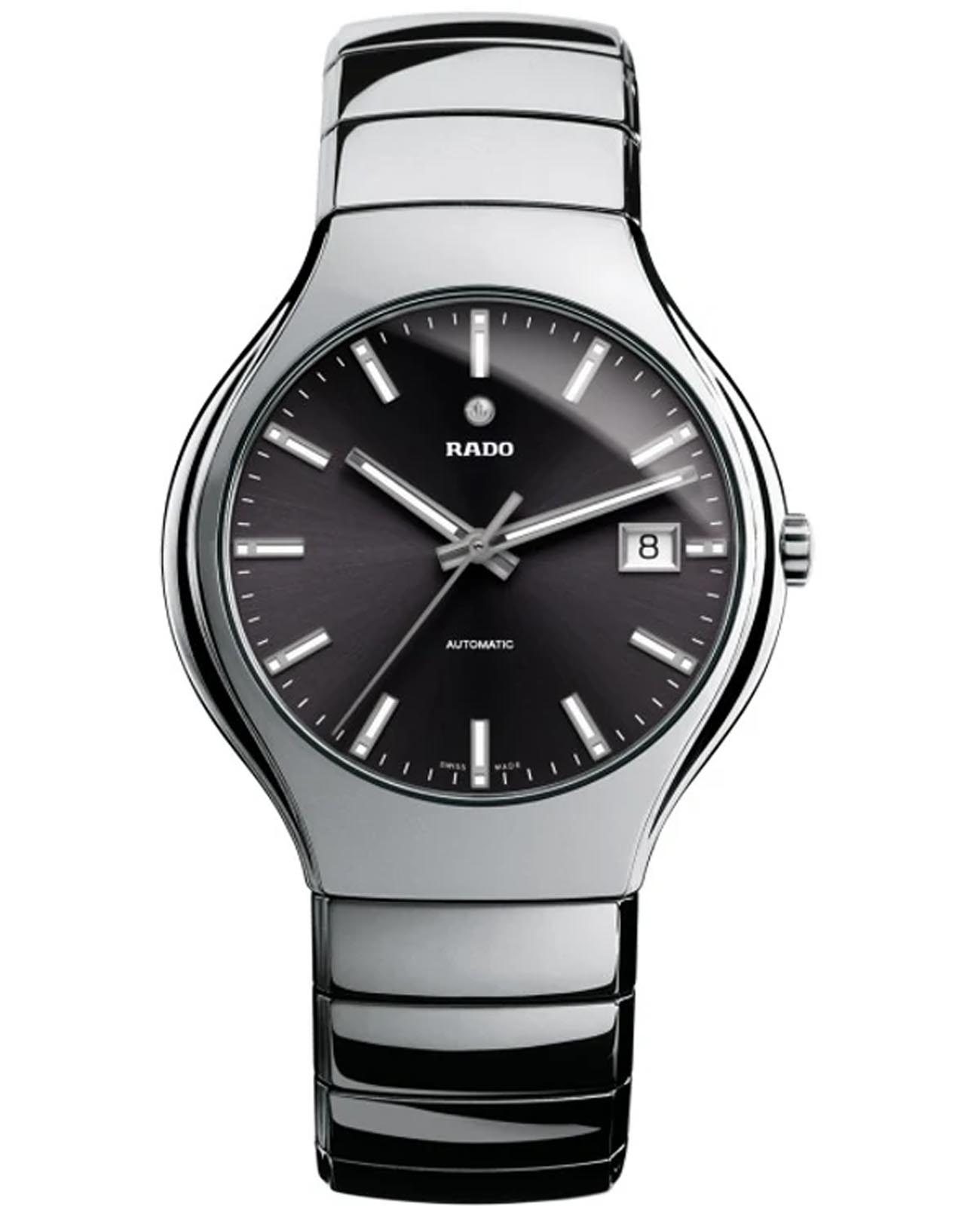 Мужские механические швейцарские часы с автоподзаводом Rado True R27351112. Сапфировое стеклоСапфировое стеклоПрочный и надёжный материал из кристалла сапфира синтетического происхождения, характеризующийся особой твёрдостью и устойчивостью к царапинам и повреждениям. устойчивое к мелким механическим повреждениям. Корпус часов изготовлен из высокотехнологичной керамикиВысокотехнологичная керамикаИнновационный запатентованный Rado материал с гладкой или матовой поверхностью. Керамика за счёт кристаллической структуры обладает повышенной устойчивостью от возникновения царапин. Материал способен принимать температуру тела человека, обеспечивая невероятный комфорт при ношении.. Окошко даты находится в положении 3 часа. Стрелки с люминесцентным покрытиемЛюминесцентное покрытиеПозволяет считывать показания времени в темноте. Производители наносят на стрелки, часовые индексы, безель или поверхность циферблата светонакопительный состав, дающий холодное свечение.. Браслет из высокотехнологичной керамикиВысокотехнологичная керамикаИнновационный запатентованный Rado материал с гладкой или матовой поверхностью. Керамика за счёт кристаллической структуры обладает повышенной устойчивостью от возникновения царапин. Материал способен принимать температуру тела человека, обеспечивая невероятный комфорт при ношении. на застёжке-бабочке с кнопкамиЗастёжка "бабочка"Такой вид застёжки дополняется предохранителями, помогающими избежать случайного раскрытия браслета. Обладают изящным исполнением. .