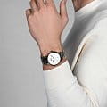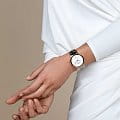 Аксессуар с белым циферблатом являет собой сочетание классической красоты и современного дизайна, отражающего минимализм. Его безупречная работа обеспечивается за счёт швейцарского автоматического механизма с 80-часовым запасом хода. Прозрачная задняя крышка позволяет прикоснуться к часовому искусству и понаблюдать за движением деталей. Сапфировое стеклоСапфировое стеклоПрочный и надёжный материал из кристалла сапфира синтетического происхождения, характеризующийся особой твёрдостью и устойчивостью к царапинам и повреждениям.. Браслет из высокотехнологичной керамики и нержавеющей стали с PVDPVDУльтратонкое покрытие наносится в технике вакуумного напыления, сочетает в себе нитрид титана особой прочности со слоем золота или оксида хрома. Несёт в себе декоративную или защитную функцию. покрытием. Водонепроницаемость 50 метров. . Окошко даты.