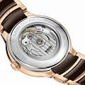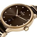 Аксессуар с коричневым циферблатом являет собой сочетание классической красоты и современного дизайна, отражающего минимализм. Его безупречная работа обеспечивается за счёт швейцарского автоматического механизма с 80-часовым запасом хода. Прозрачная задняя крышка позволяет прикоснуться к часовому искусству и понаблюдать за движением деталей. Сапфировое стеклоСапфировое стеклоПрочный и надёжный материал из кристалла сапфира синтетического происхождения, характеризующийся особой твёрдостью и устойчивостью к царапинам и повреждениям.. Браслет из высокотехнологичной керамики и нержавеющей стали с PVDPVDУльтратонкое покрытие наносится в технике вакуумного напыления, сочетает в себе нитрид титана особой прочности со слоем золота или оксида хрома. Несёт в себе декоративную или защитную функцию. покрытием. Водонепроницаемость 50 метров. . Окошко даты.