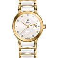 Аксессуар являет собой сочетание классической красоты и современного дизайна, отражающего минимализм. Его безупречная работа обеспечивается за счёт швейцарского автоматического механизма ETA 2671 с 38-часовым запасом хода. Прозрачная задняя крышка позволяет прикоснуться к часовому искусству и понаблюдать за движением деталей. Сапфировое стекло. Инкрустация 12 бриллиантами в 0,025 карат. Браслет из стали 316L с золотистым PVD-покрытиемPVDУльтратонкое покрытие наносится в технике вакуумного напыления, сочетает в себе нитрид титана особой прочности со слоем золота или оксида хрома. Несёт в себе декоративную или защитную функцию. и высокотехнологичной керамикиВысокотехнологичная керамикаИнновационный запатентованный Rado материал с гладкой или матовой поверхностью. Керамика за счёт кристаллической структуры обладает повышенной устойчивостью от возникновения царапин. Материал способен принимать температуру тела человека, обеспечивая невероятный комфорт при ношении.. Водонепроницаемость 30 метров. . Окошко даты. Диаметр корпуса: 28 мм.