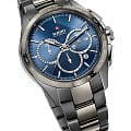Наручные часы с синим циферблата дополнены счётчиками хронографаХронографФункция позволяет измерять отрезки времени с особой точностью: часы, минуты, секунды. Верным признаком хронографа является наличие на циферблате 3 дополнительных окошек-счётчиков. в контрастном исполнении, секундная стрелка имеет красный наконечник. Корпус модели сделан из революционной плазменной керамикиВысокотехнологичная плазменная керамикаИнновационный материал, технология запатентована. Выплавление керамики осуществляется в печи при 20 000 °C, белоснежный материал под воздействием ультравысокой температуры приобретает уникальный блеск, присущий металлам. и нержавеющей стали 316L, браслет объединяет плазменную керамику и материал CeramosCeramosМатериал являет собой инновационное сочетание высокотехнологичной керамики и сплава металла. Он объединяет керамическую устойчивость к царапинам и металлический роскошный блеск. . Высокая точность хода обеспечивается за счёт автоматического калибра ETA 2894-2 с резервом хода 45 часов, его работу можно понаблюдать через прозрачную заднюю крышку. Сапфировое стекло с антибликовой обработкой. Круглая апертура даты, секундомер, тахиметрТахиметрРазмеченная шкала, располагается на ободке или безеле часов. Тахиметр позволяет рассчитать скорость на определённом участке пути, расстояние измеряется в километрах или милях.. Водонепроницаемость до 10 бар. . Диаметр корпуса: 45 мм.
